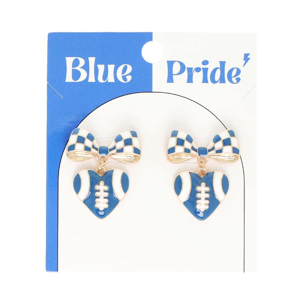 ENAMEL HEART AND HEART-SHAPED FOOTBALL POST DANGLE EARRINGS WITH CHECKERED BOW DESIGN