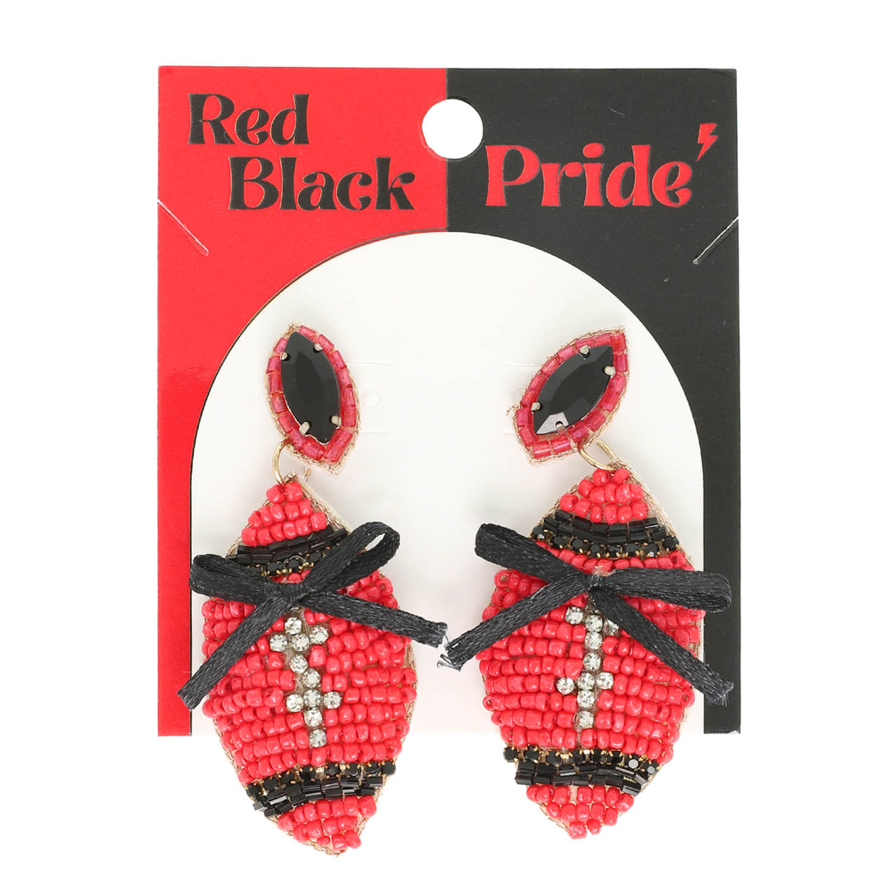 GAMEDAY FOOTBALL WITH BOW CRYSTAL SEED BEADED POST DANGLE EARRINGS