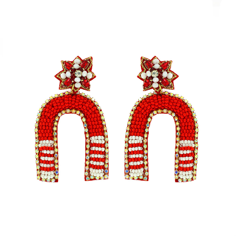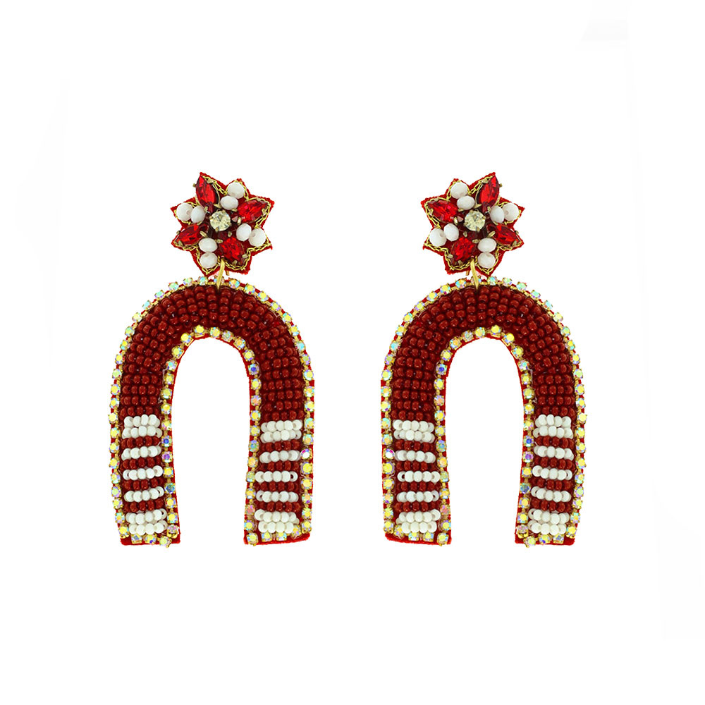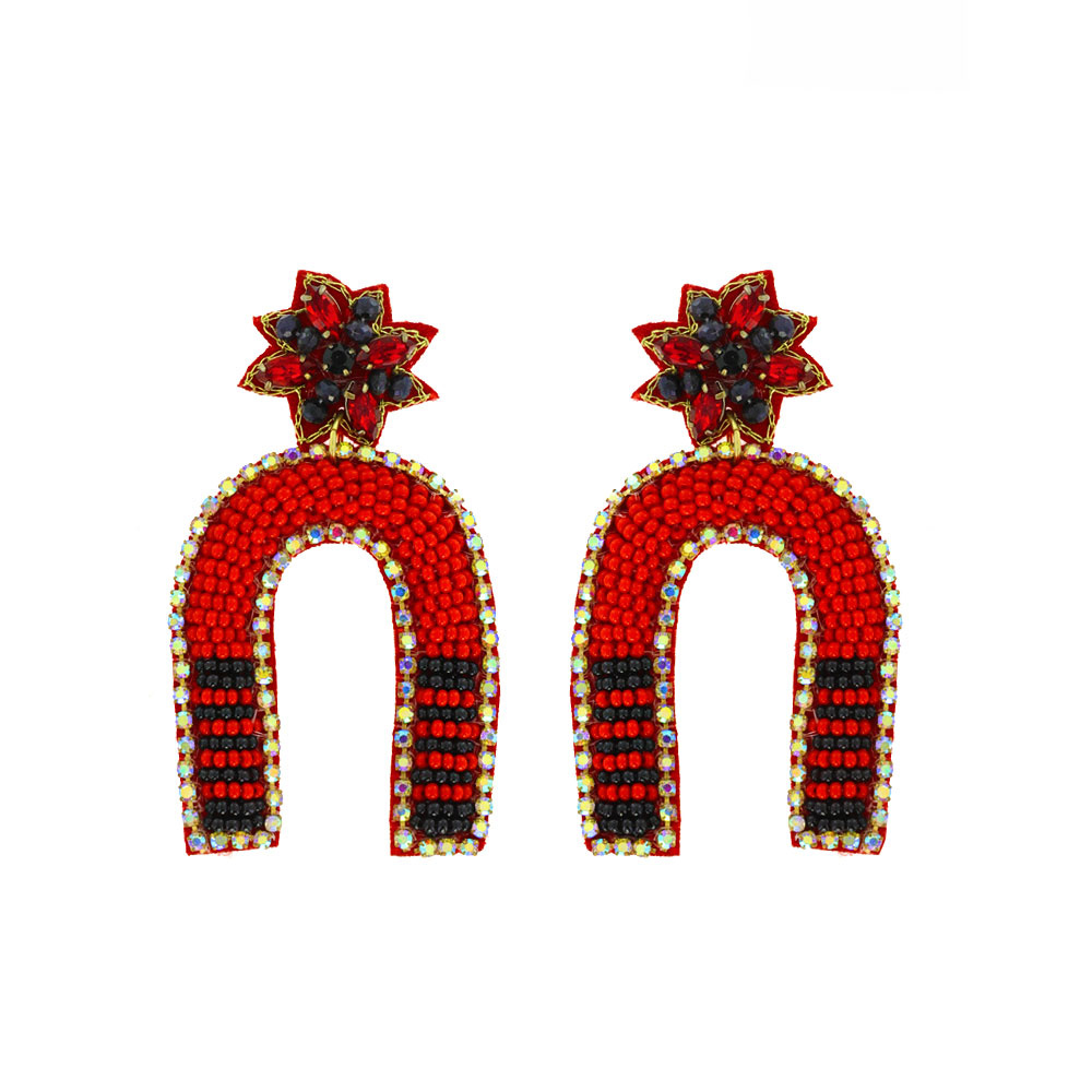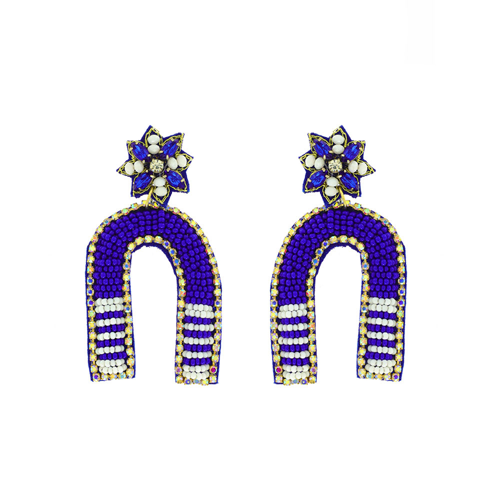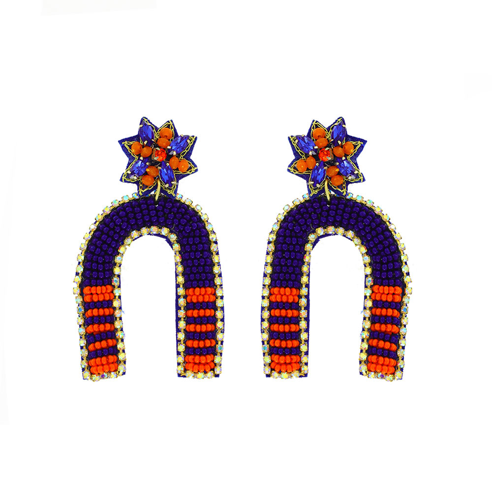 SEED BEAD HANDMADE GAMEDAY STRIPED ARCH BEADWORK JEWELED DROP EARRINGS