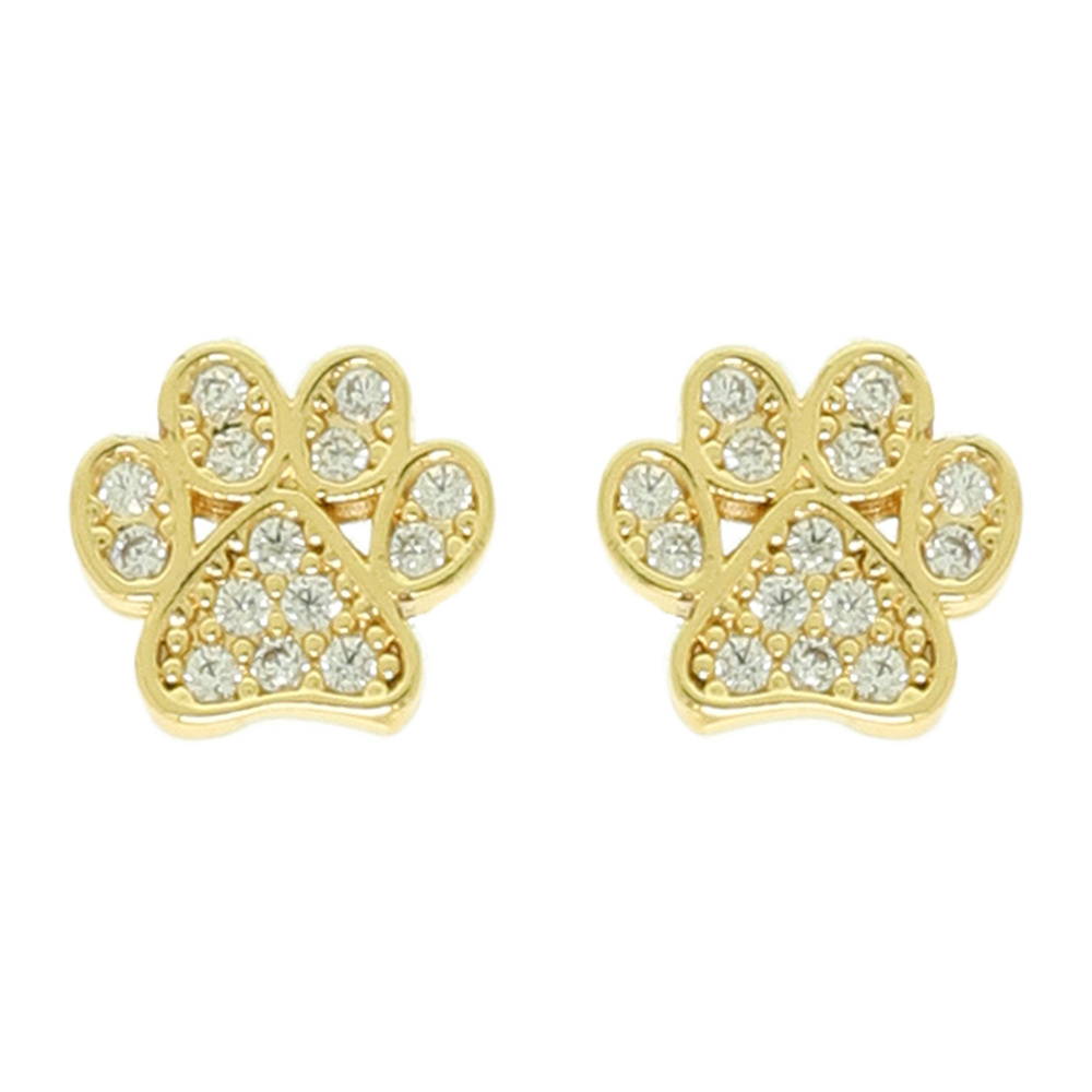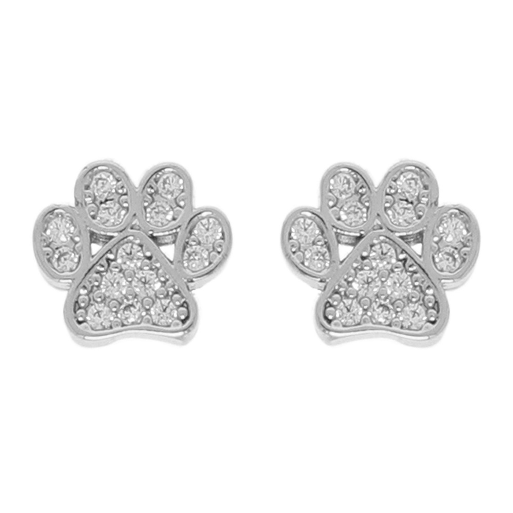GAME DAY CUBIC ZIRCONIA PAVE PAW STUD EARRINGS IN SILVER TONE METAL