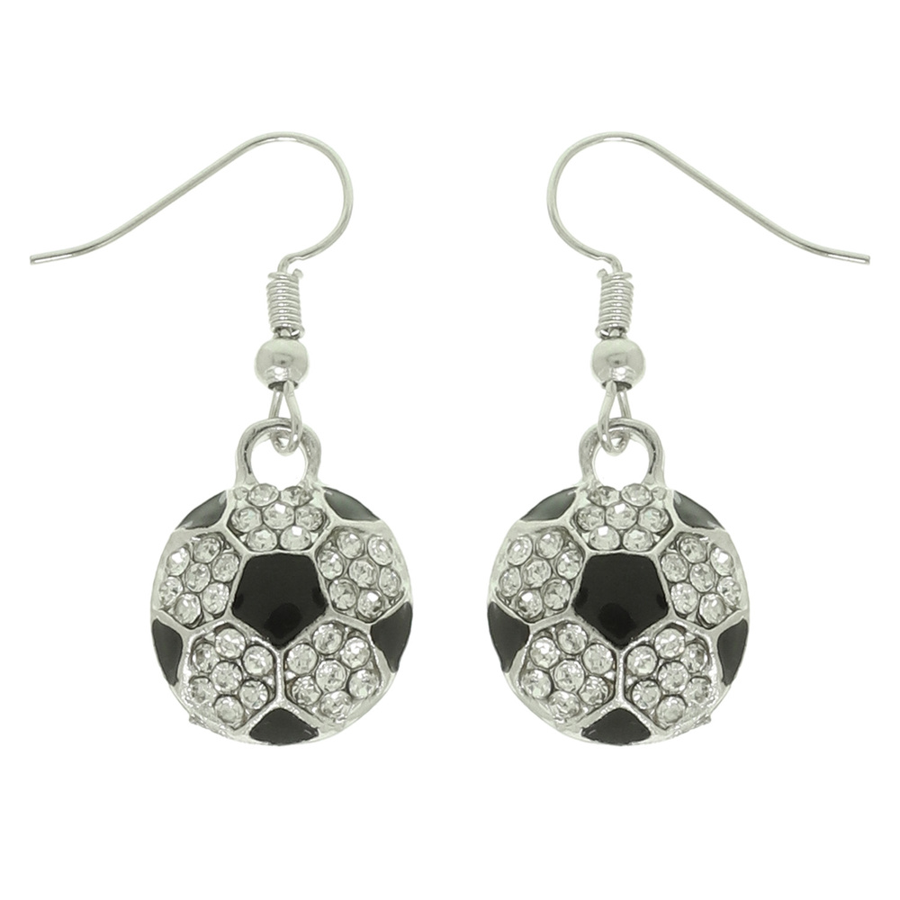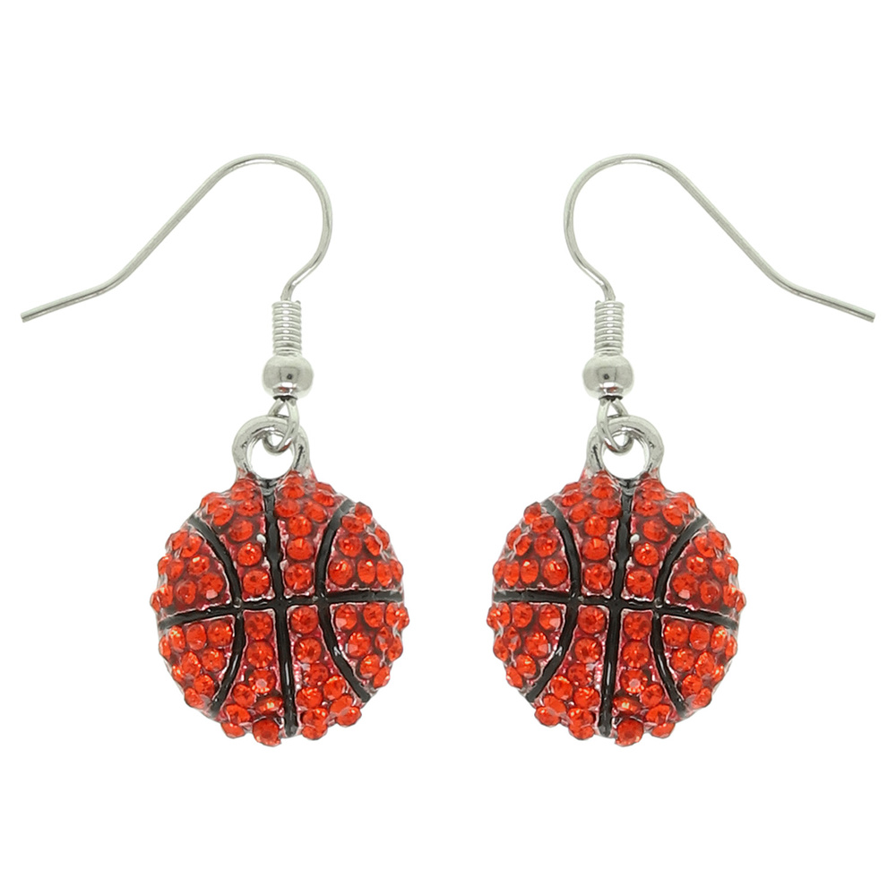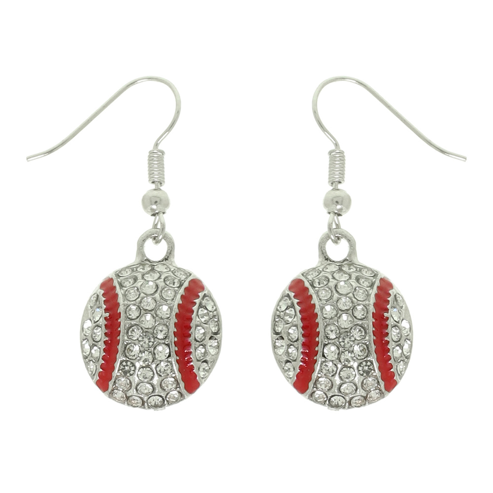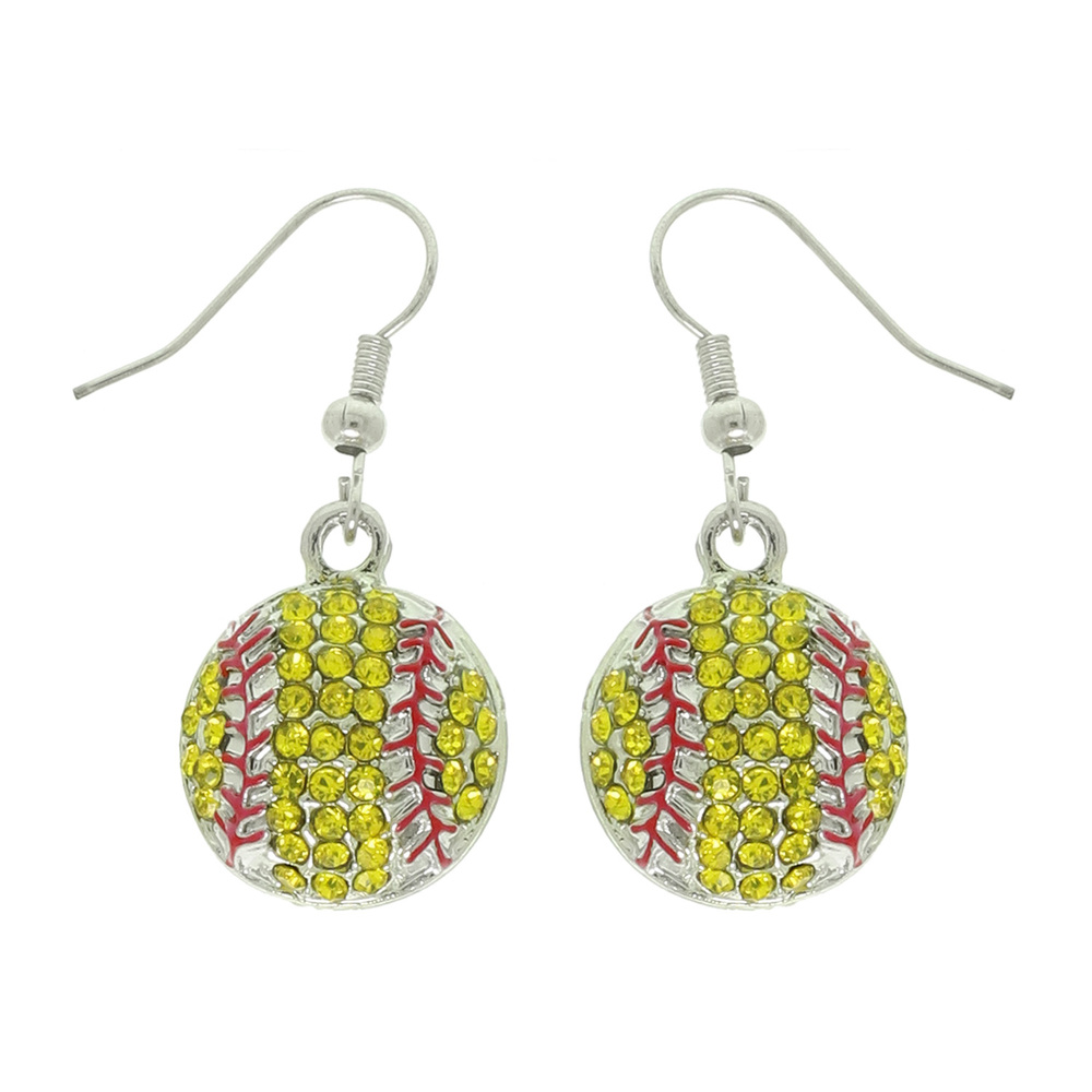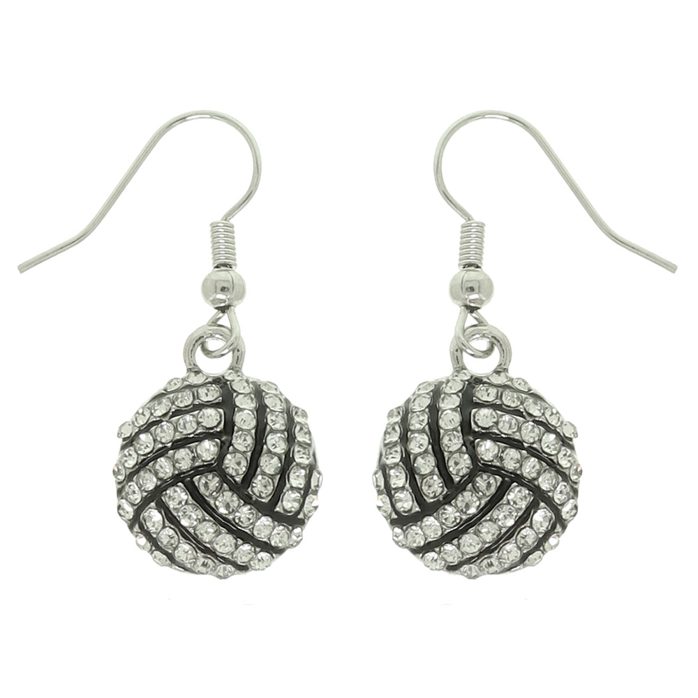 GAME DAY CRYSTAL PAVE DANGLE EARRINGS IN BASEBALL BASKETBALL FOOTBALL VOLLEYBALL AND SOCCER DESIGNS