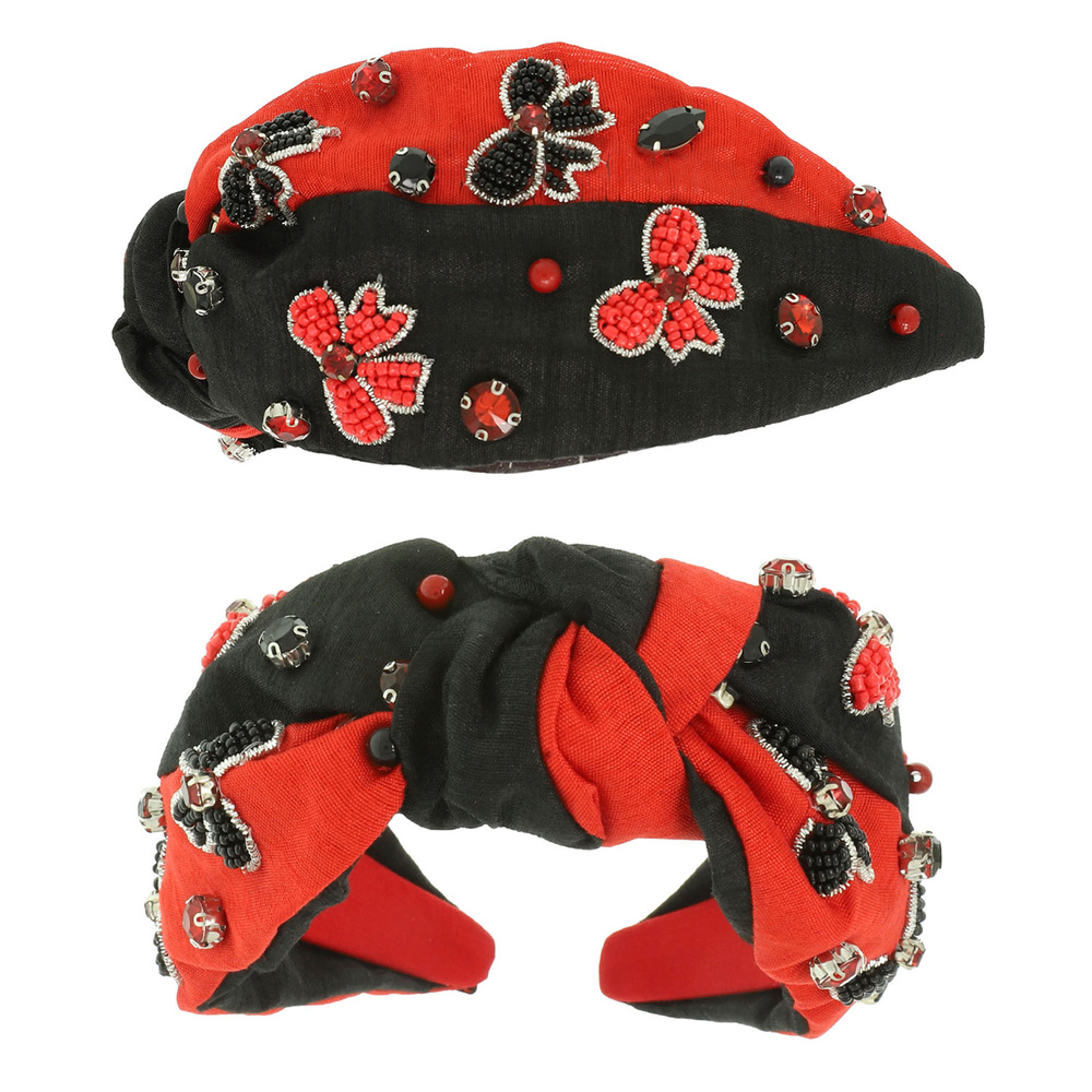GAME DAY COW CRYSTAL SEED BEADED TOP KNOTTED HEADBAND