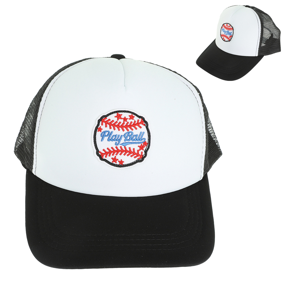 "PLAY BALL" BASEBALL TRUCKER HAT WITH ADJUSTABLE SNAPBACK CLOSURE