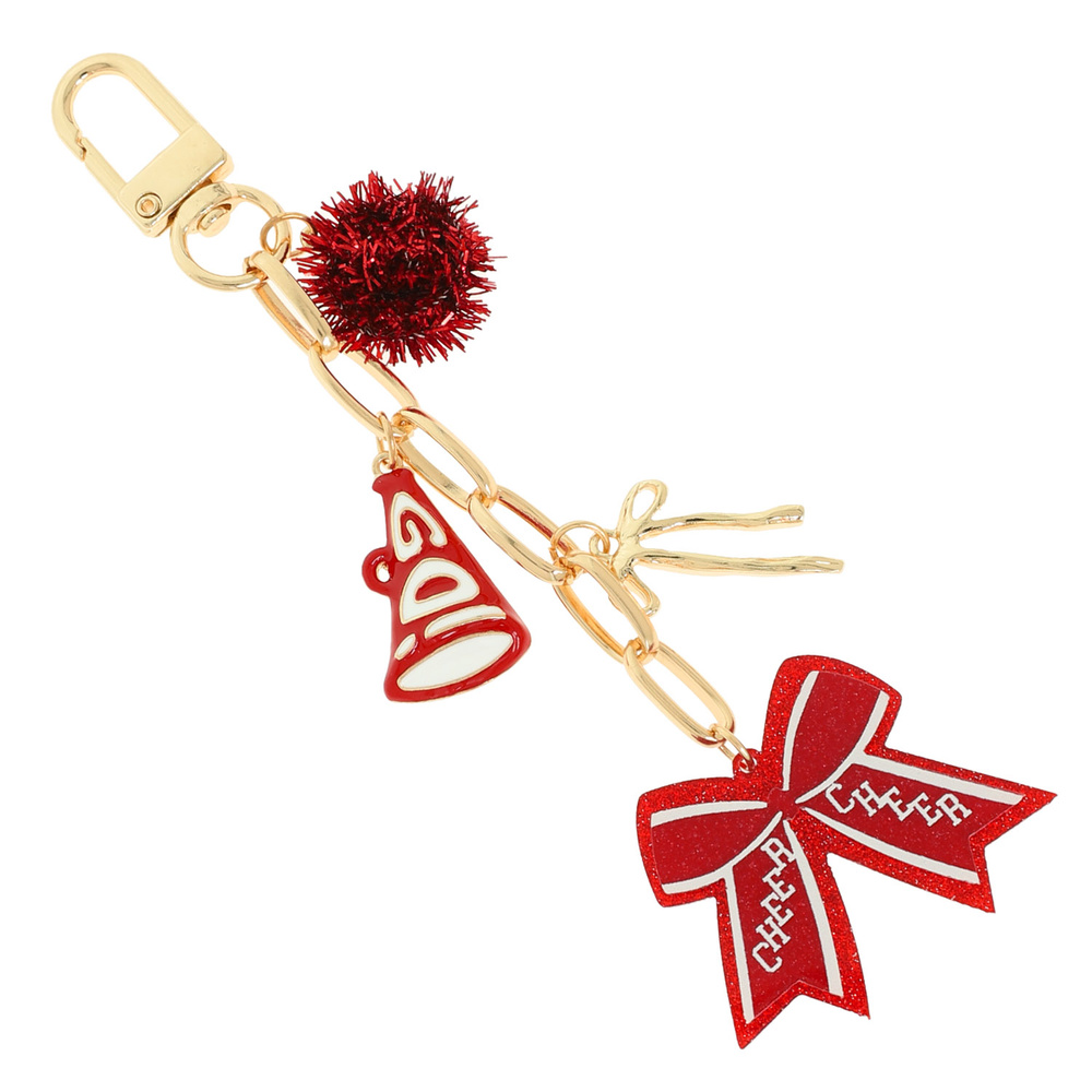 BAG CHARM KEYCHAIN WITH POM POM ENAMEL MEGAPHONE GLITTERED AND METAL BOW TRINKET
