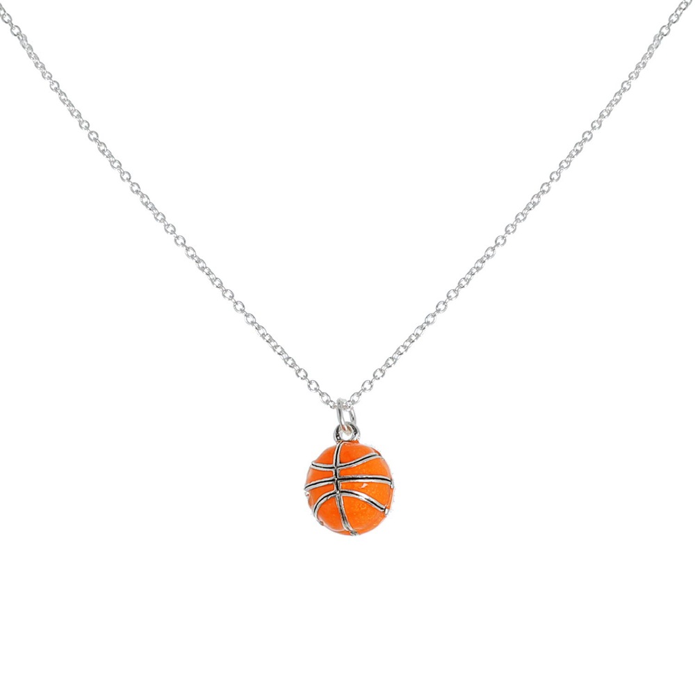 BASKETBALL GAME DAY ENAMEL COATED ADJUSTABLE PENDANT NECKLACE IN SILVER TONE METAL