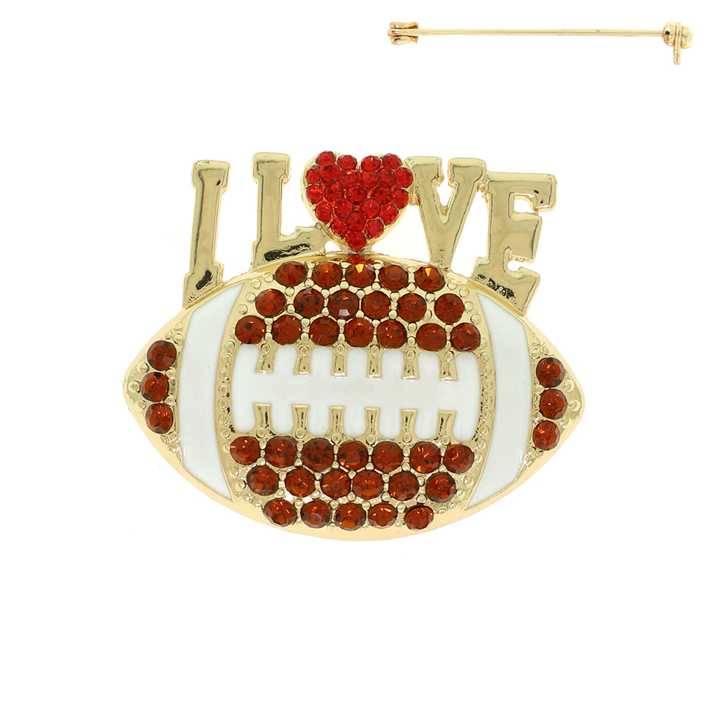 GAMEDAY "I LOVE FOOTBALL" RHINESTONE FOOTBALL BROOCH PIN
