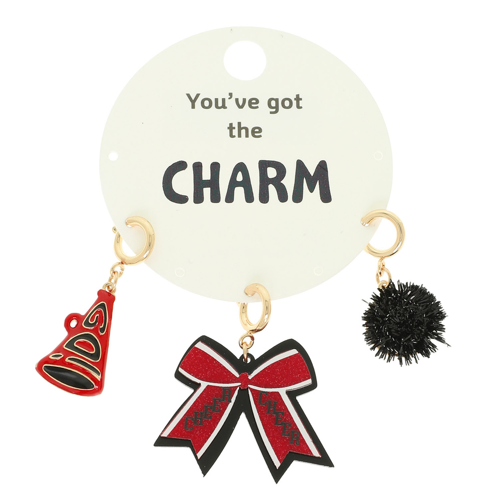 CHARM SET FEATURING POM POM ENAMEL MEGAPHONE GLITTERED BOW