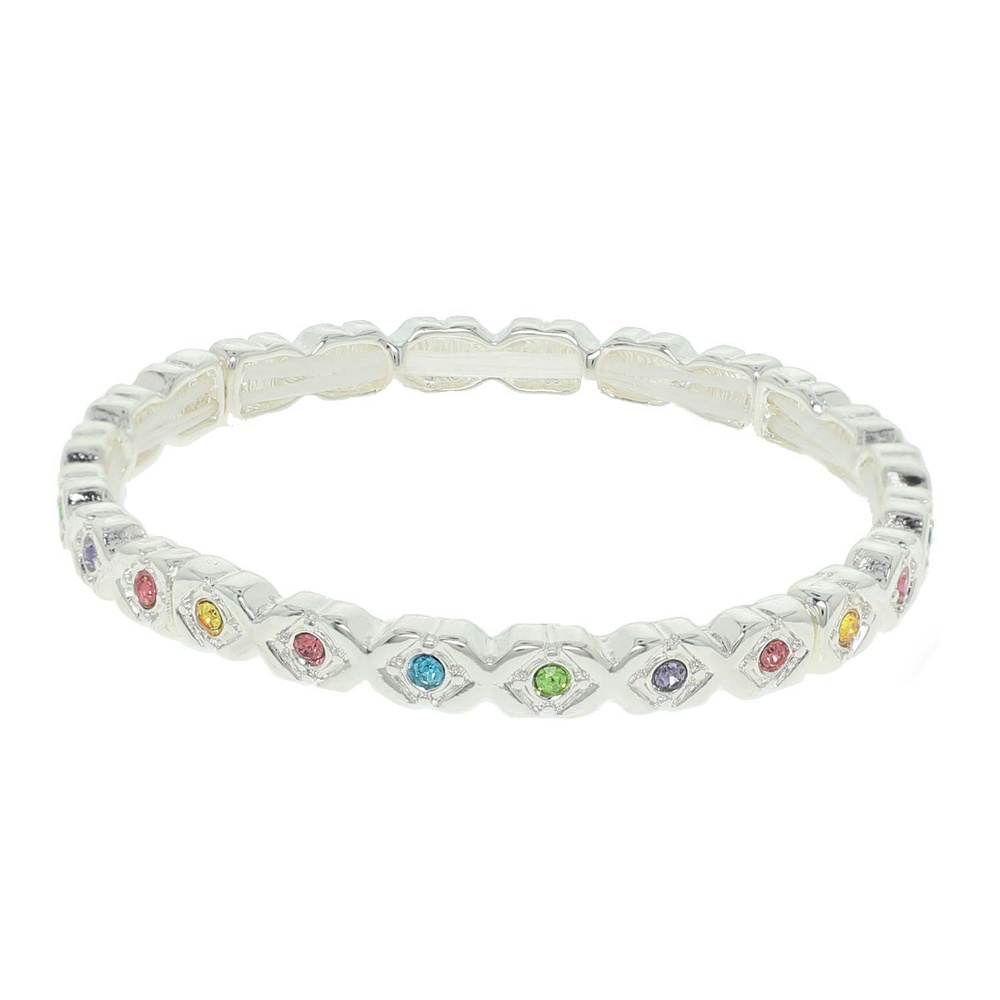 VALENTINE XOXO RHINESTONE METAL STRETCH BRACELET IN SILVER TONE METAL