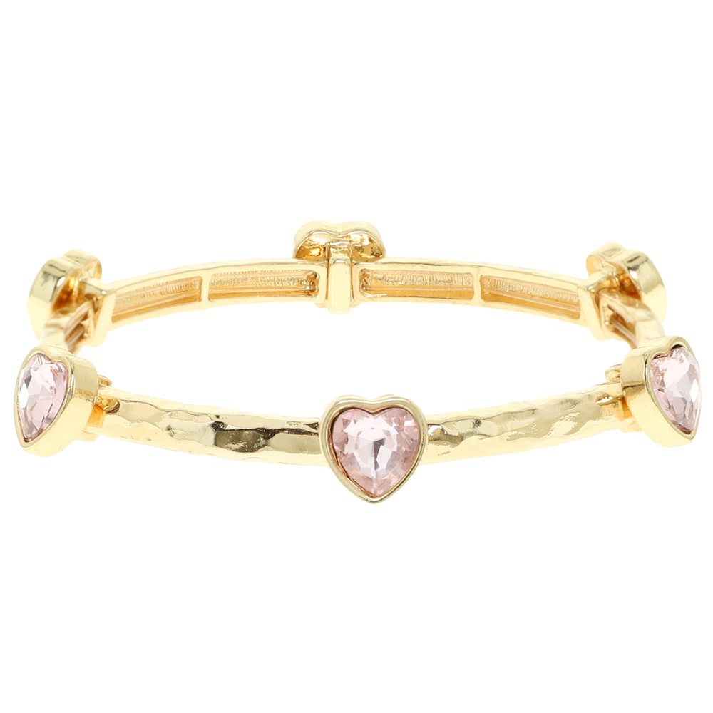 POLISHED CRYSTAL HEART EMBELLISHED STATION HINGE CLASP BRACELET