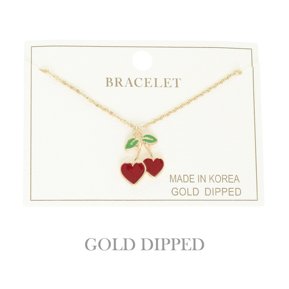 Gold Plated Cherry Hearts Bracelet
