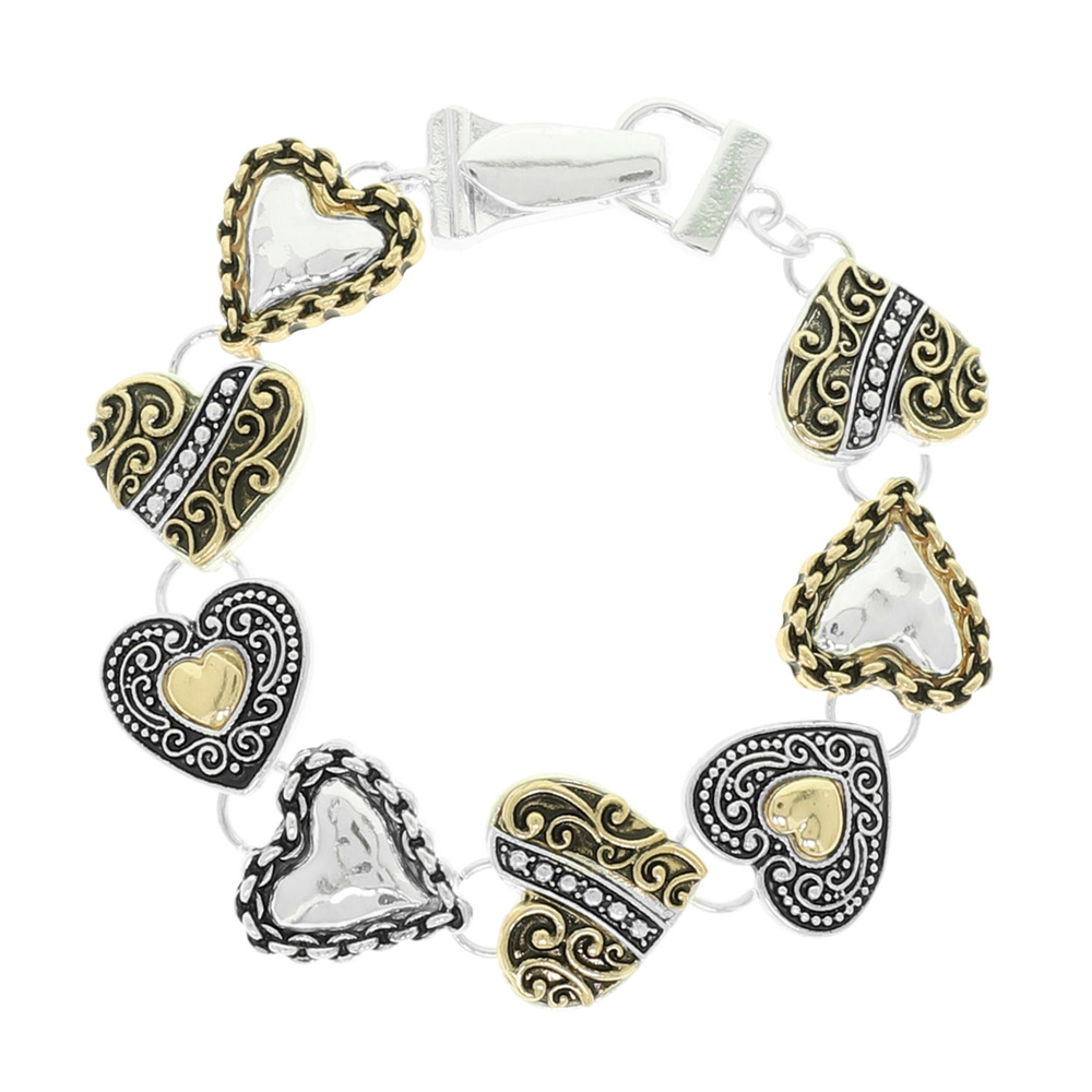 FILIGREE HEART LINK MAGNETIC BRACELET WITH CRYSTAL ACCENTS