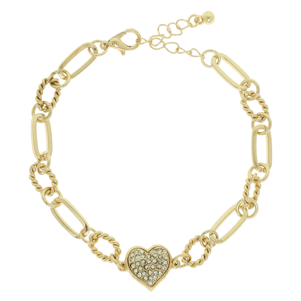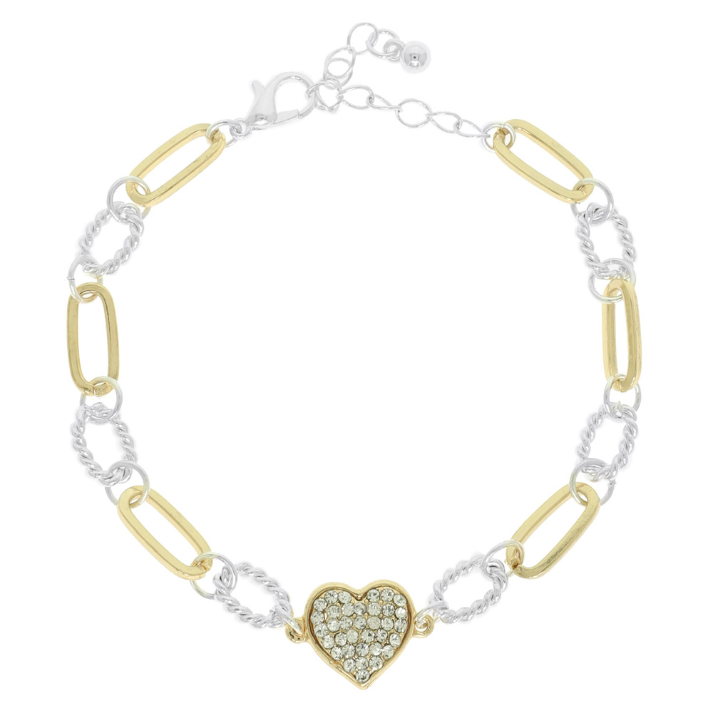 RHINESTONE PAVE HEART BRACELETS AVAILABLE IN GOLD TONE OR SILVER TONE METAL