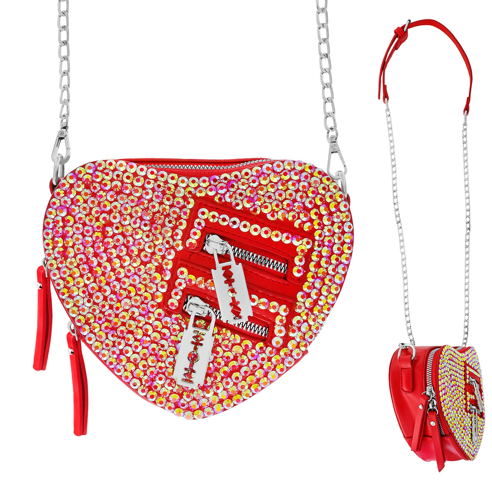 HEART SHAPED BODY CROSS BAG WITH STONE