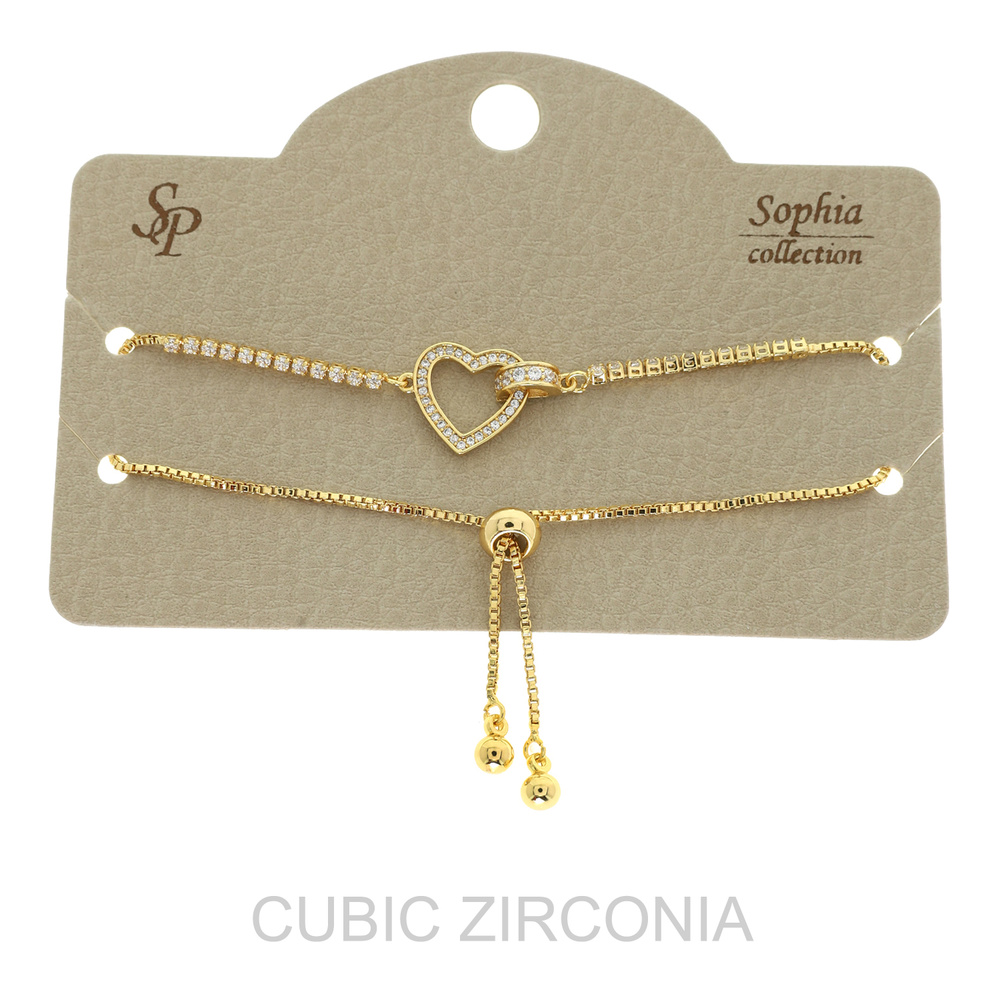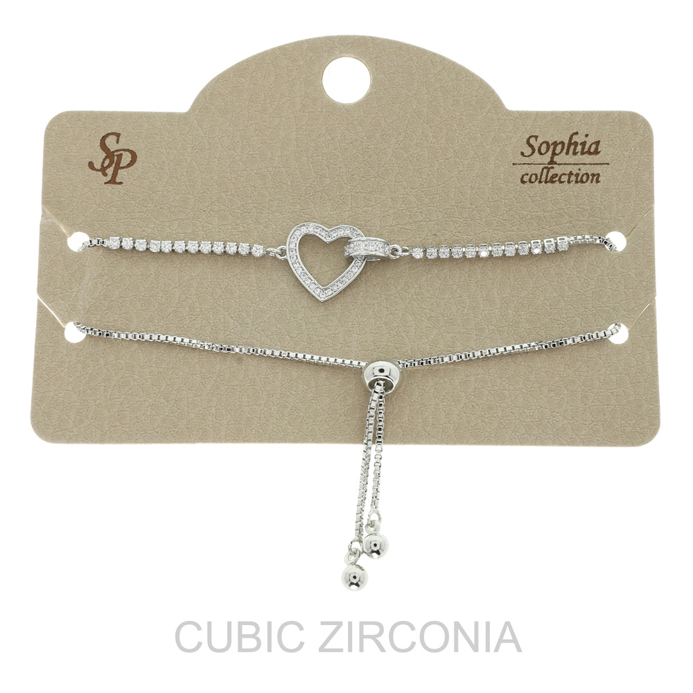 Valentine's Day Cz Heart Bolo Slider Bracelet