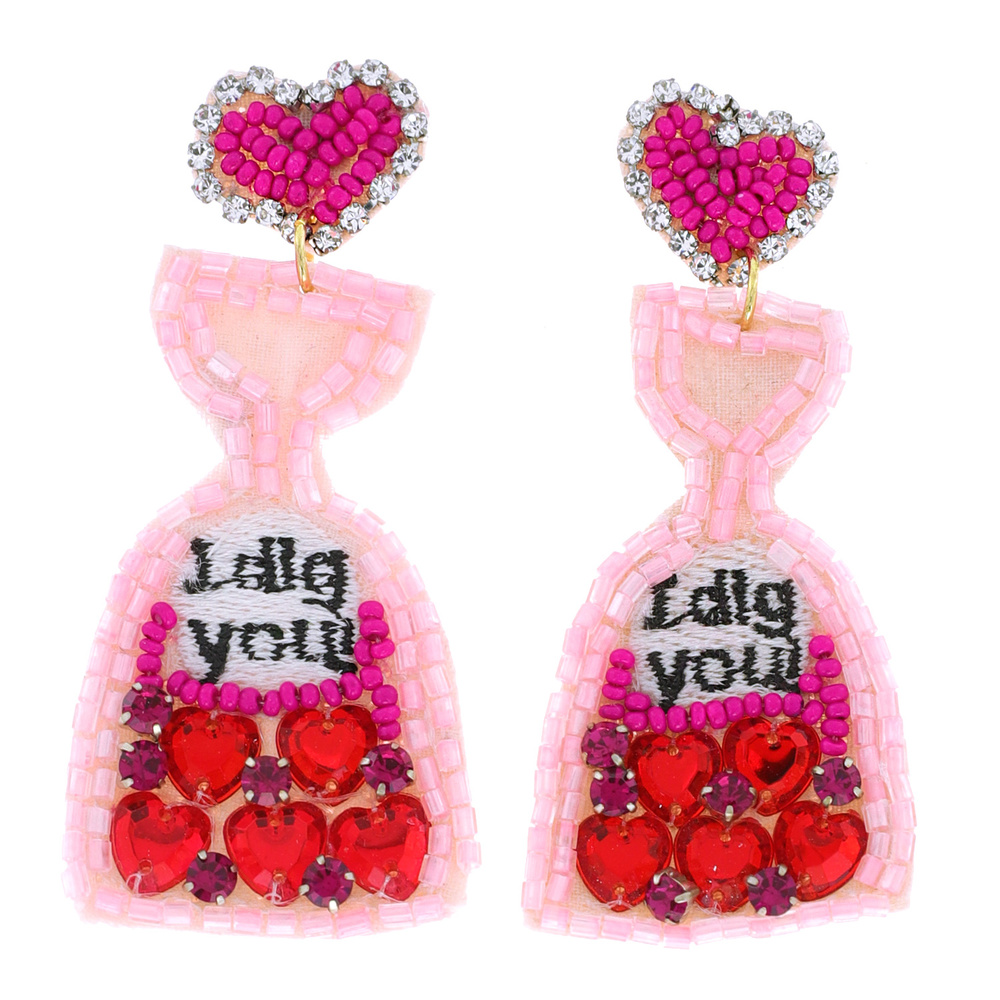 2-tier "i Dig You" Love Potion Jeweled Bead Mix Handmade Beaded Embroidery Dangle And Drop Valentine Earrings