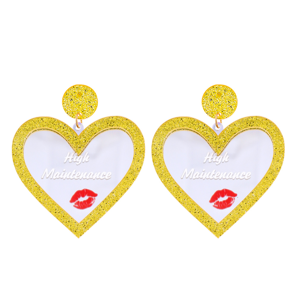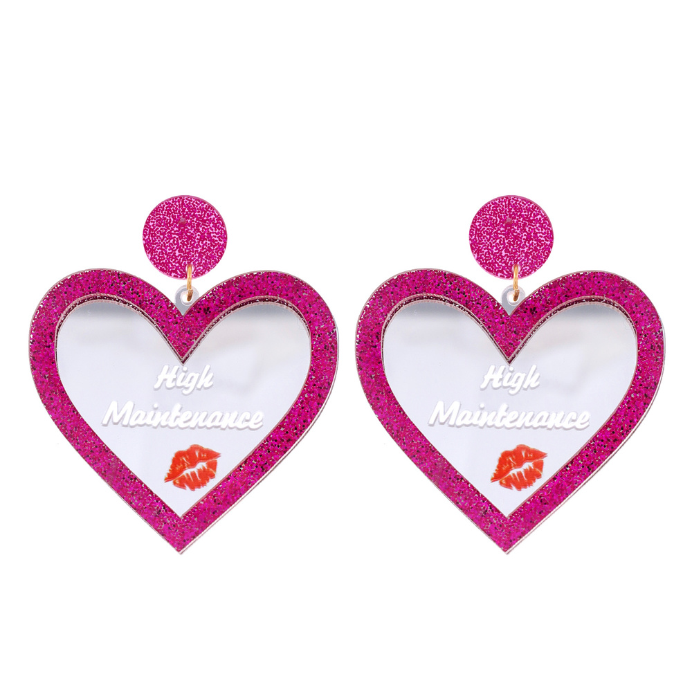 2-tier "high Maintenance" Mirror Heart Shaped Glitter Dangle And Drop Valentine's Day Earrings