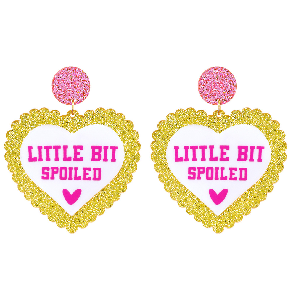 2-TIER "LITTLE BIT SPOILED" SCALLOPED HEART SHAPED GLITTER DANGLE AND DROP VALENTINE'S DAY EARRINGS