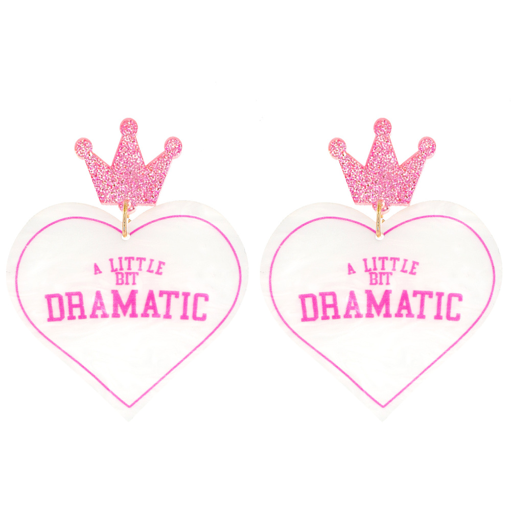 2-TIER "LITTLE BIT DRAMATIC" HEART SHAPED GLITTER DANGLE AND DROP VALENTINE'S DAY EARRINGS