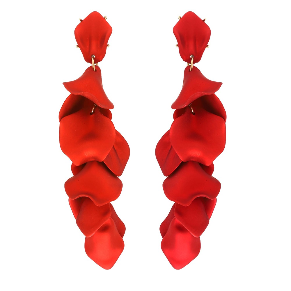RED ROSE PETAL ACRYLIC LONG DROP EARRINGS