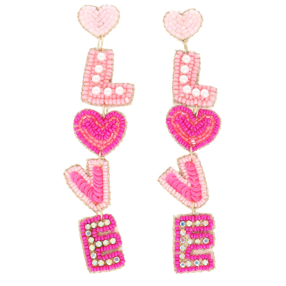 L-o-v-e Valentine Letter Jeweled Beaded Earrings