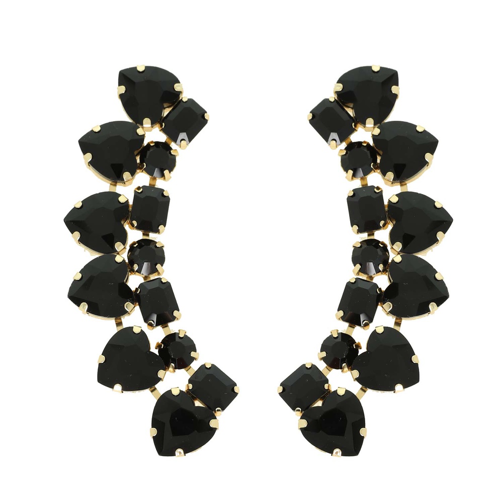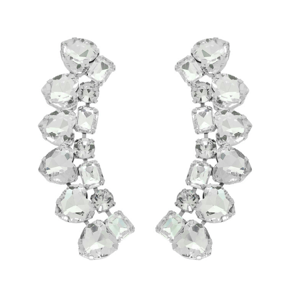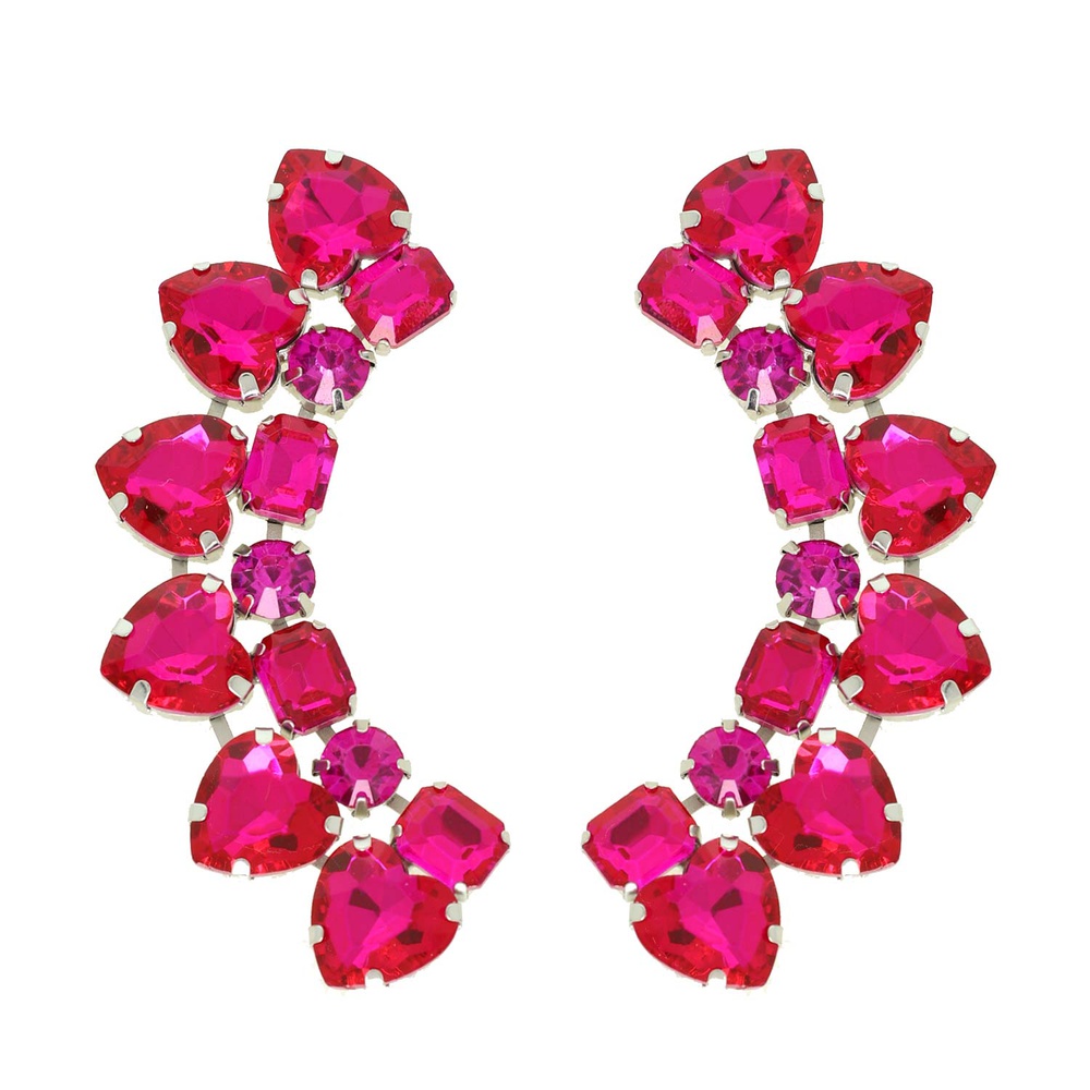 HEART CUT CRYSTAL GEMSTONE CLUSTER CURVED LONG DROP EARRINGS