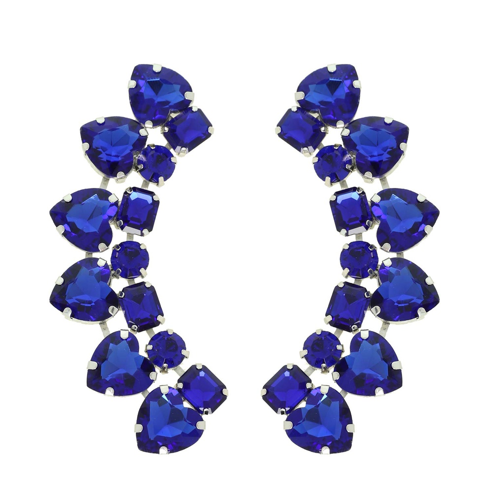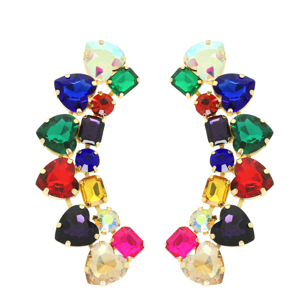 Heart Cut Gemstone Cluster Curved Drop Earrings