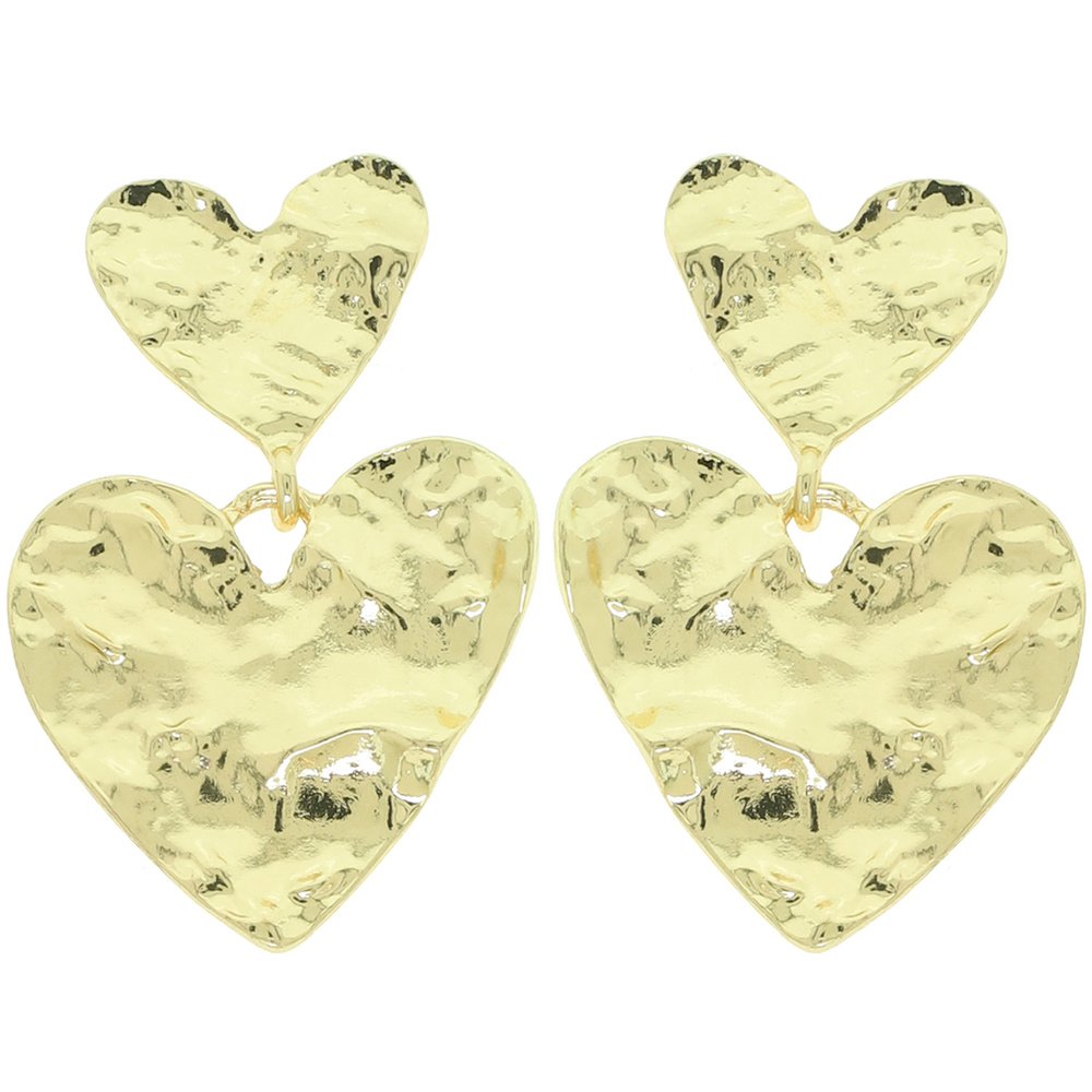 TWO-TIER HAMMERED HEART POST DANGLE EARRINGS IN GOLD-TONE METAL