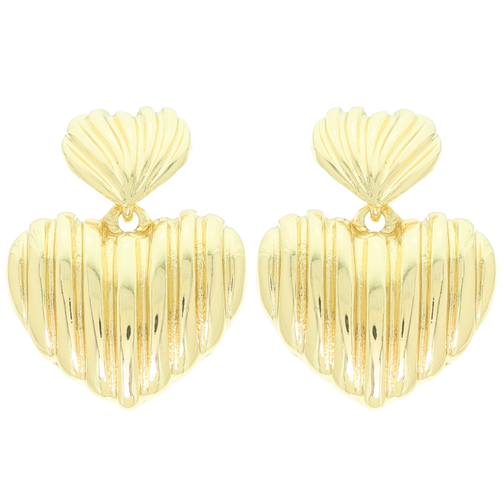 TWO-TIER DOUBLE RIDGED HEART POST DANGLE EARRINGS