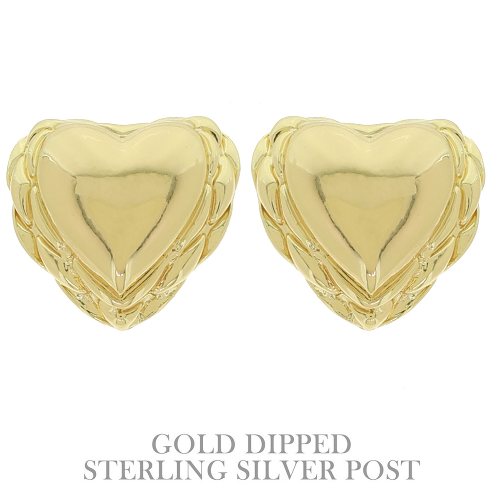 SCALLOP-EDGED DOME HEART POST EARRINGS IN YELLOW GOLD PLATING