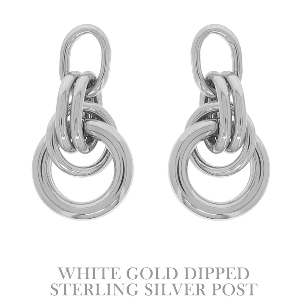 POLISHED LAYERED CHAIN-LINK DOORKNOCKER POST EARRINGS IN YELLOW GOLD PLATING