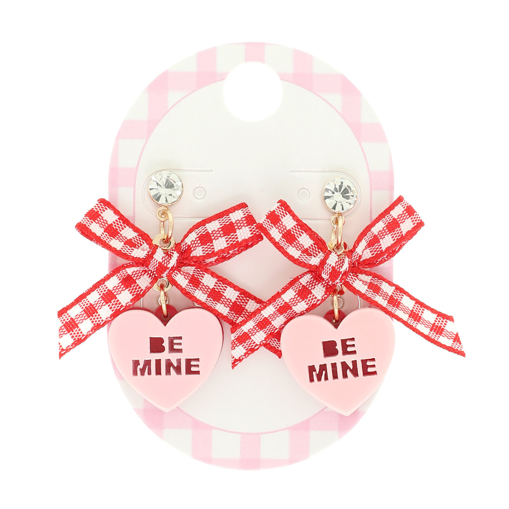 VALENTINE CONVERSATION HEART POST DANGLE EARRINGS WITH GINGHAM BOW