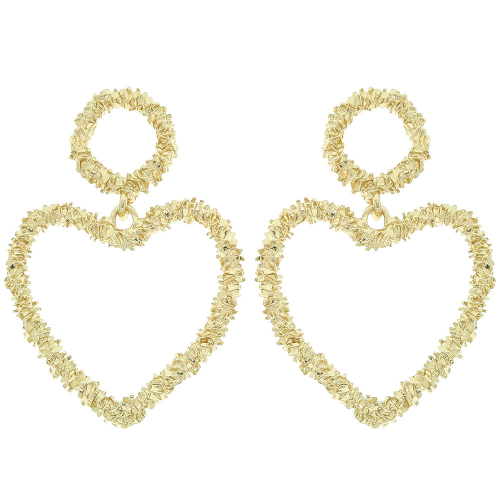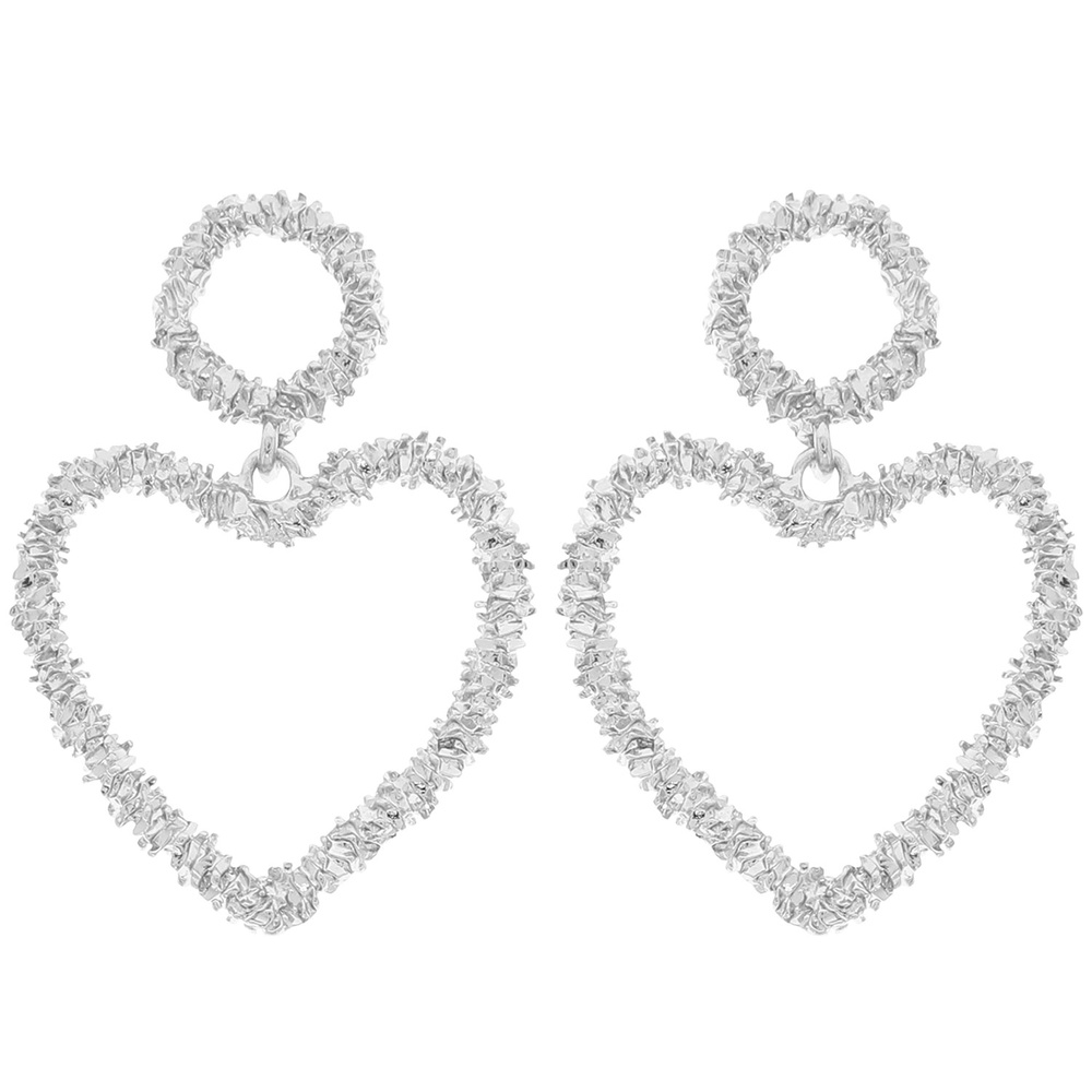 TEXTURED HEART POST DANGLE EARRINGS IN SILVER-TONE METAL