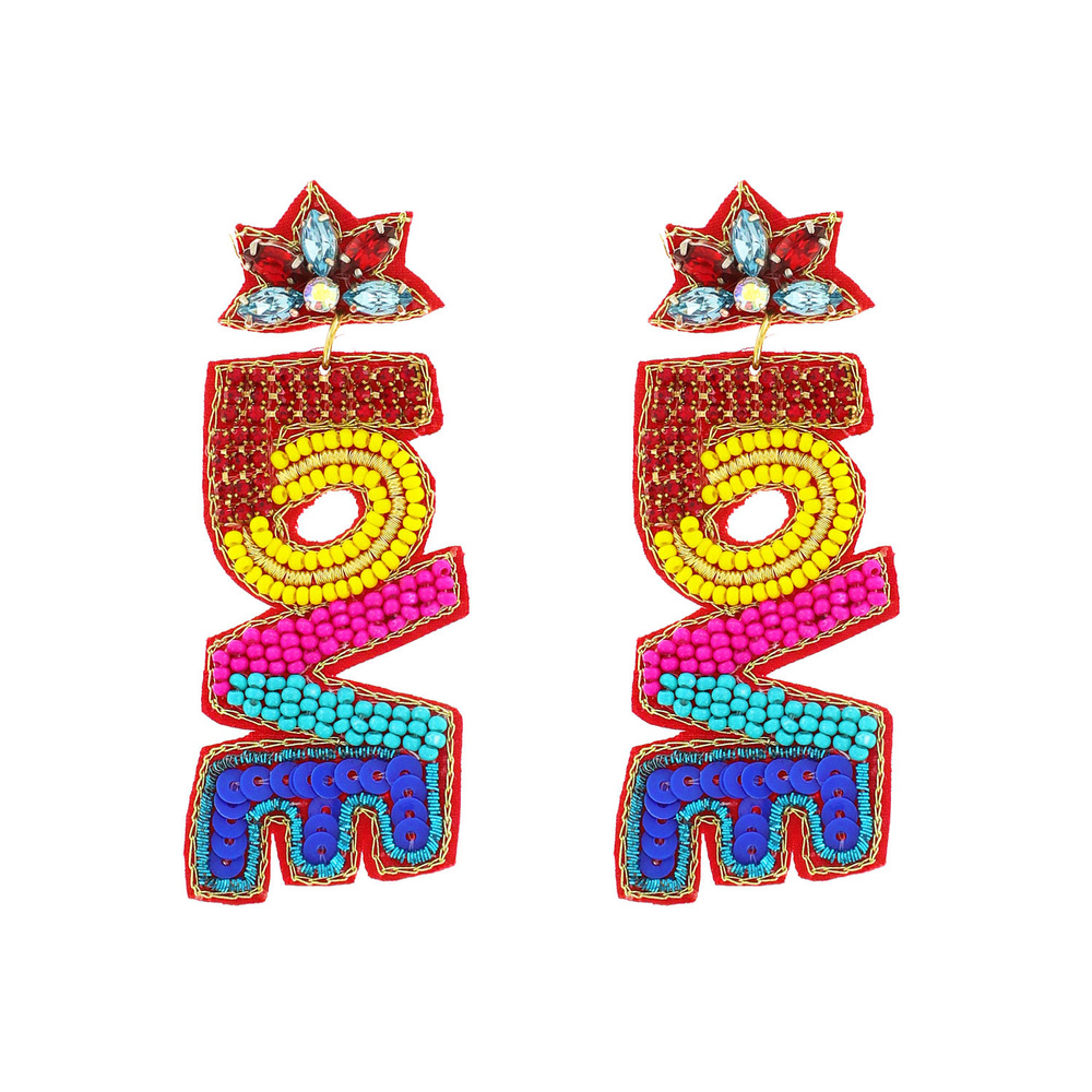 SEED BEAD "LOVE" BEAD EMBROIDERY HANDMADE JEWELED DANGLE DROP EARRINGS