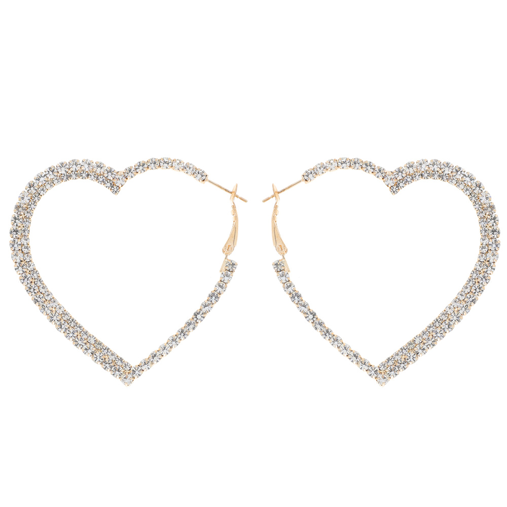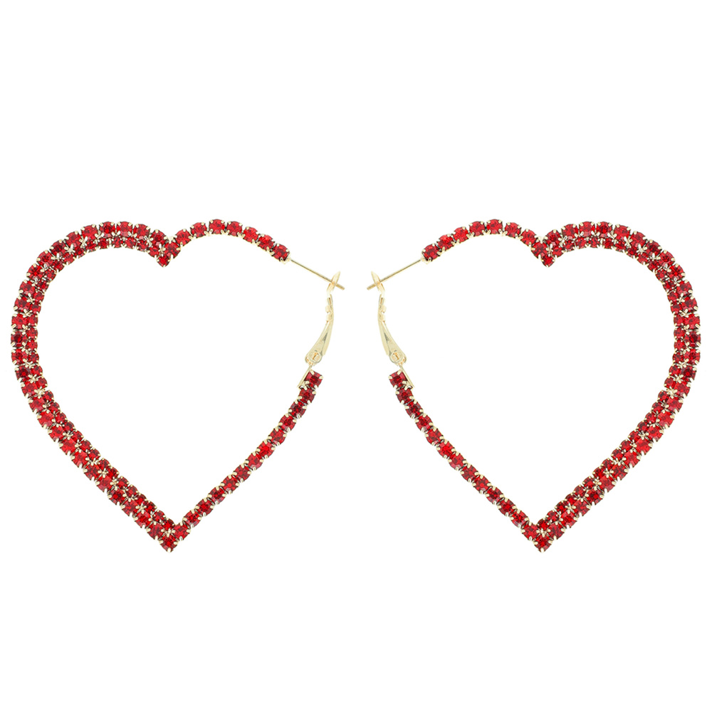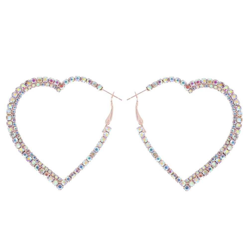 CRYSTAL RHINESTONE HEART HOOP EARRINGS