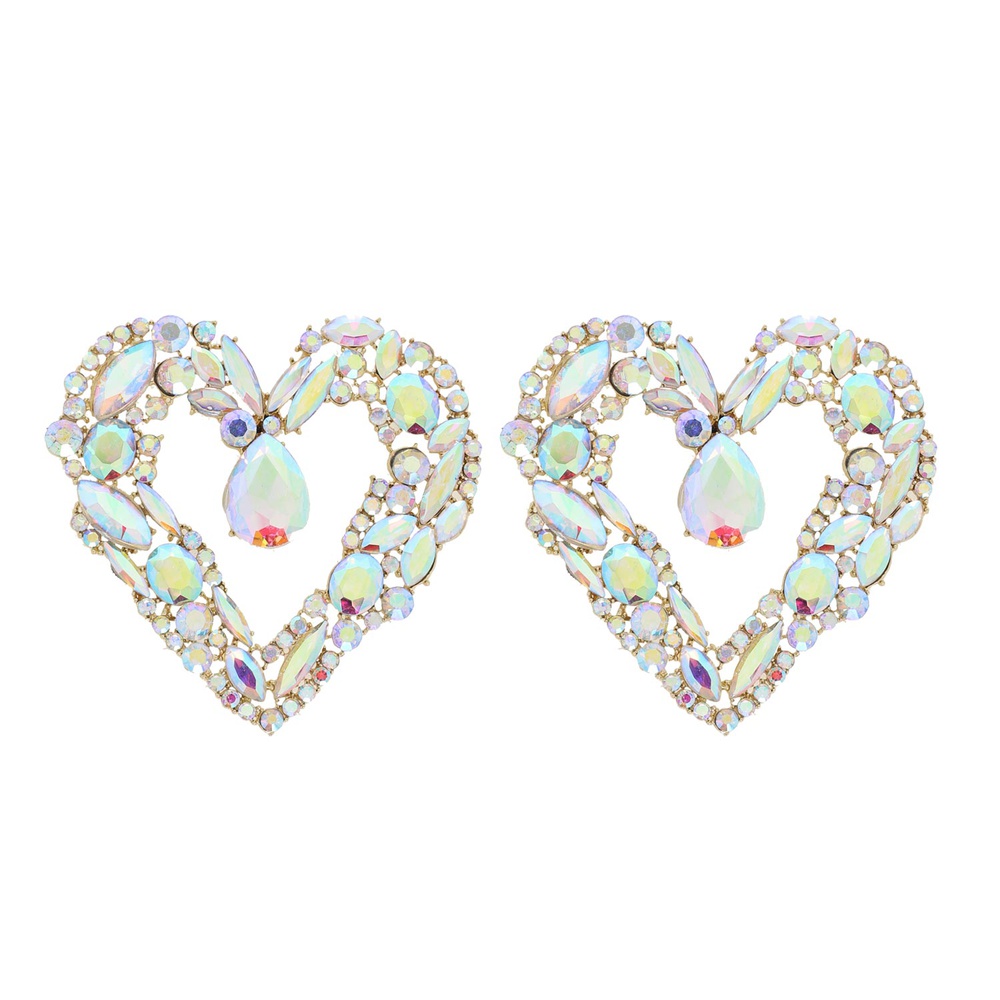 GEMSTONE CLUSTER OPEN HEART CRYSTAL DROP EARRINGS