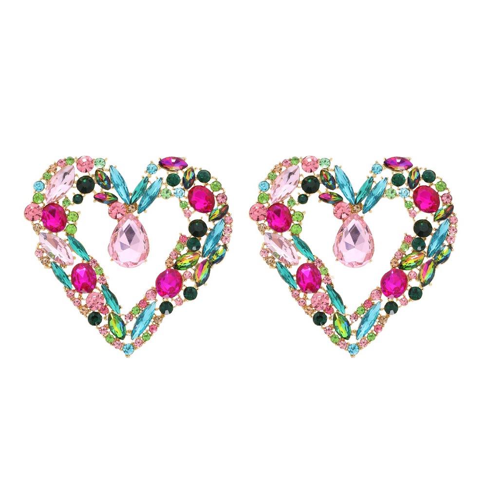 GEMSTONE CLUSTER OPEN HEART CRYSTAL DROP EARRINGS