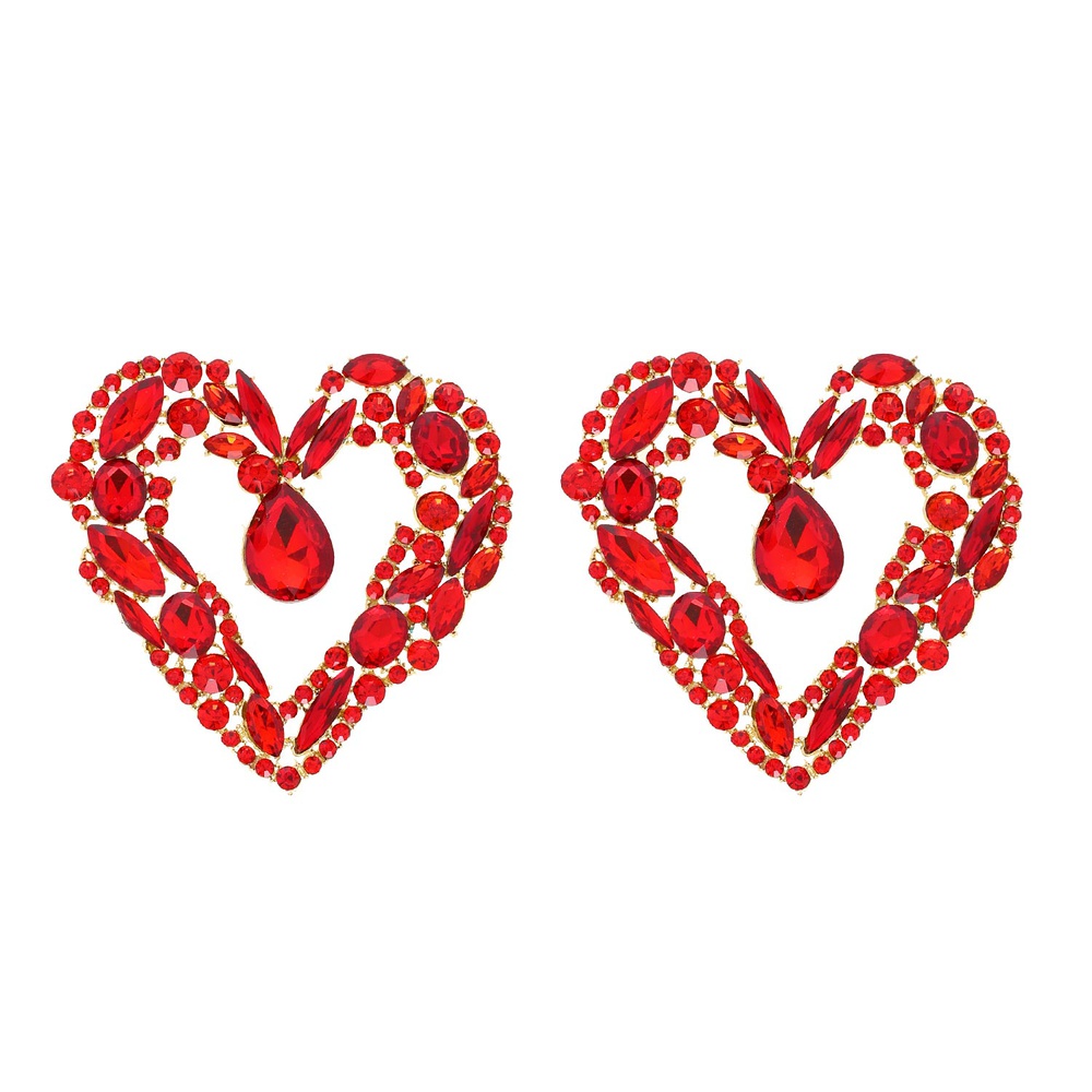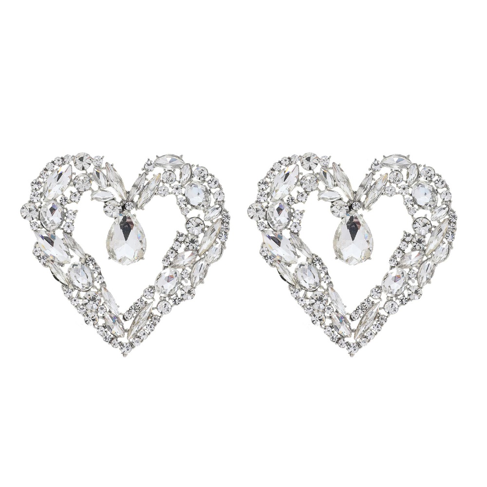 GEMSTONE CLUSTER OPEN HEART CRYSTAL DROP EARRINGS