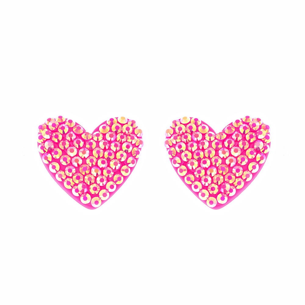 RHINESTONE HEART ACRYLIC POST EARRINGS