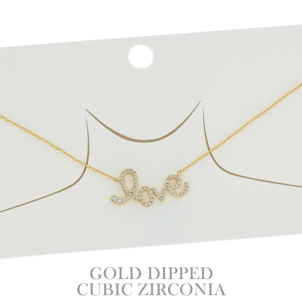 15" GOLD PLATED CUBIC ZIRCONIA PAVE ADJUSTABLE LOVE PENDANT NECKLACE IN WHITE AND YELLOW GOLD PLATTING made in KOREA