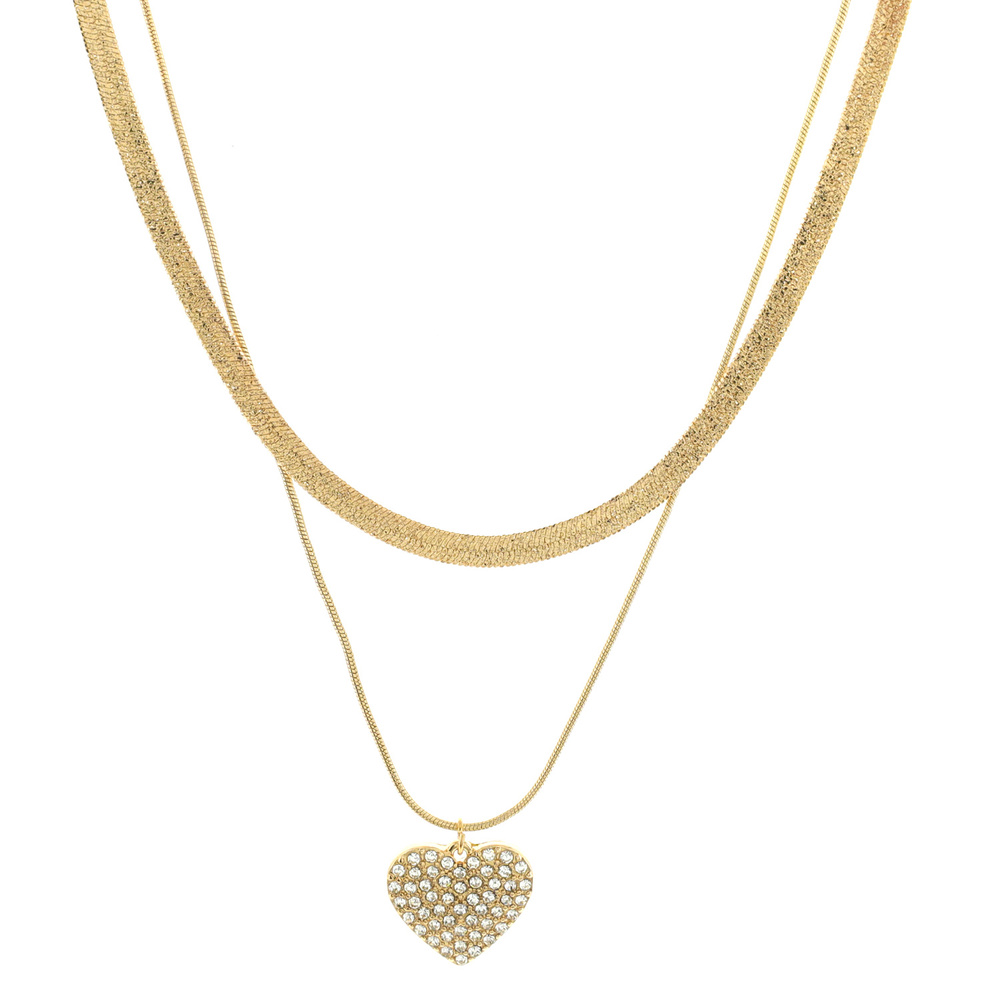 2-piece Snake Chain And Heart Pendant Adjustable Layering Necklace Set