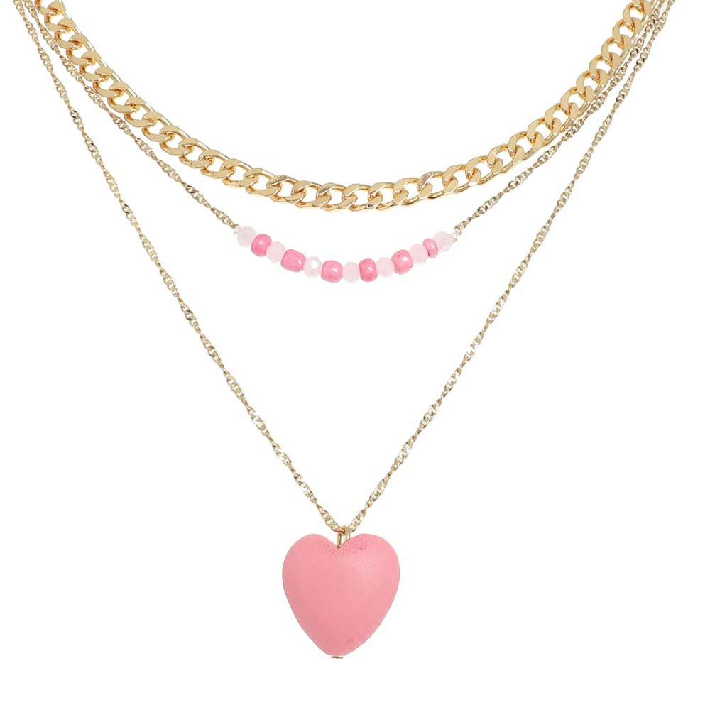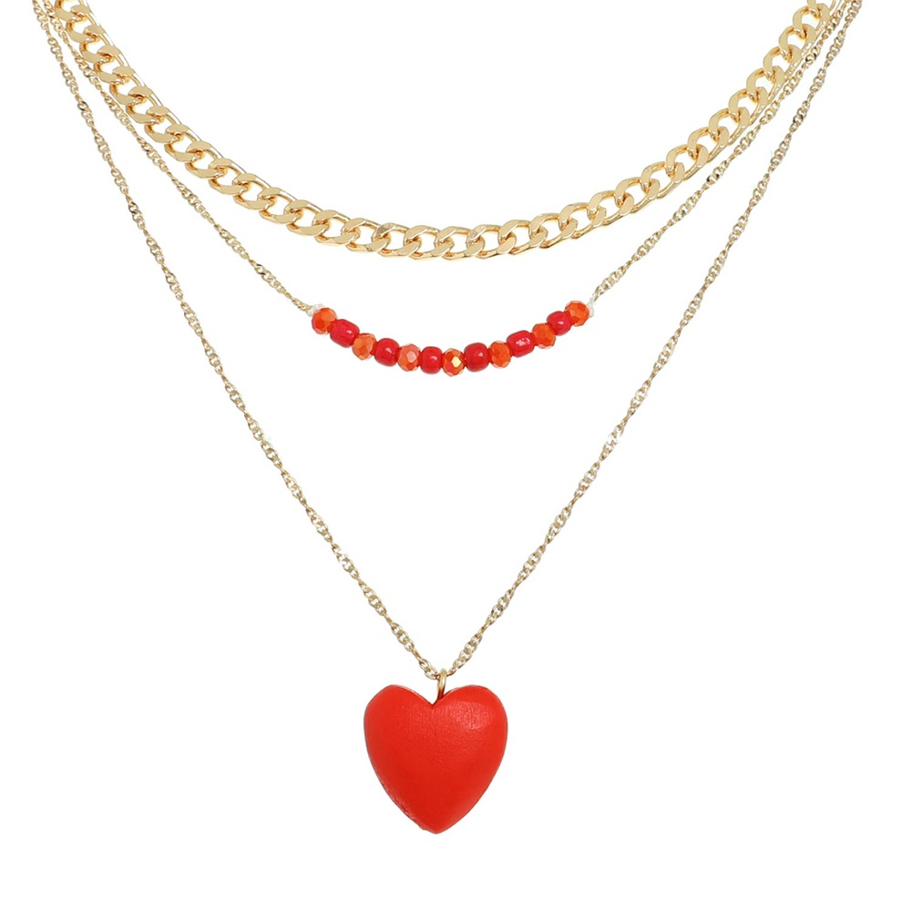 14" VALENTINE'S DAY MULTI STRAND LAYERED LOOK BEADED ADJUSTABLE HEART PENDANT CHAIN NECKLACE