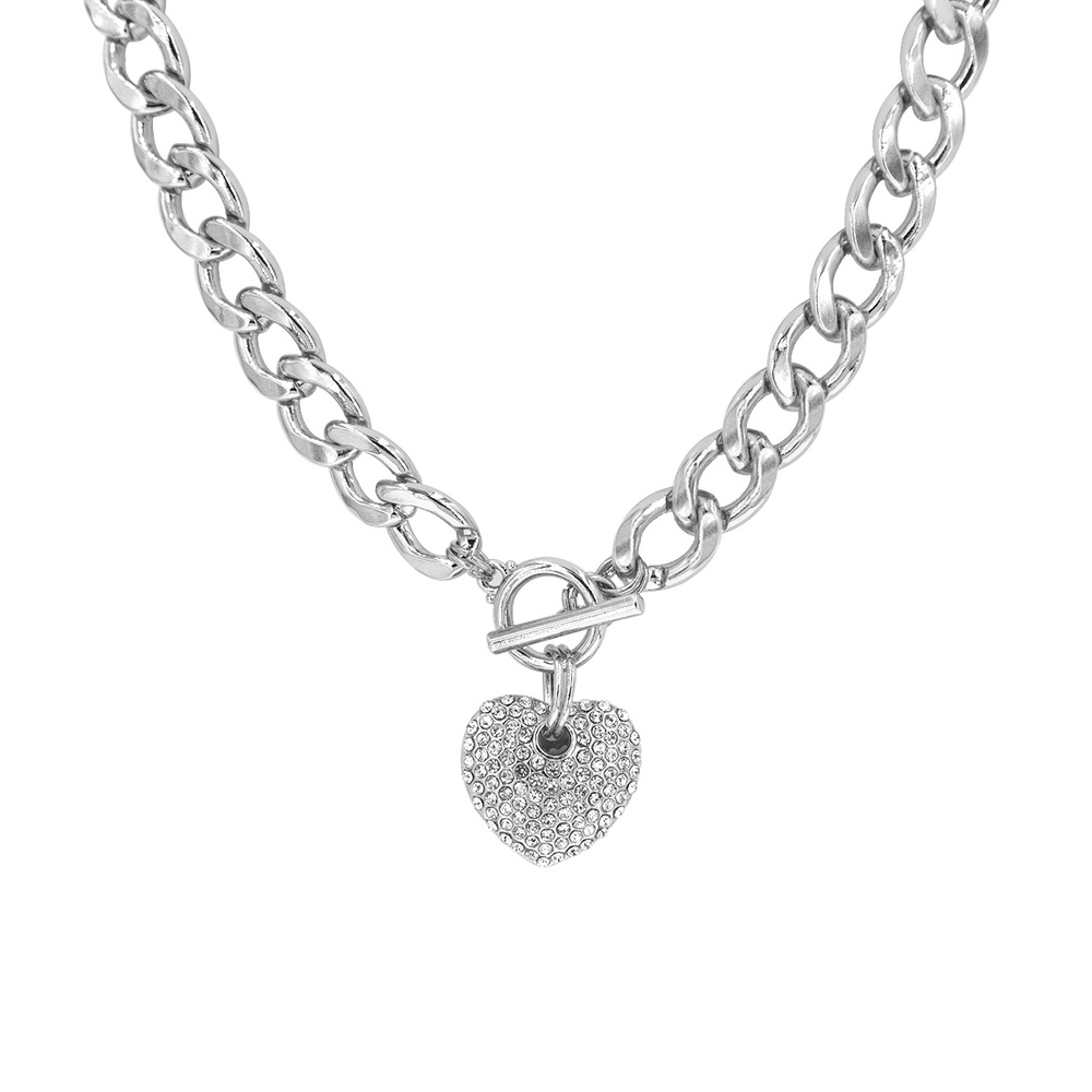PINK PUFFY PAVE HEART NECKLACE