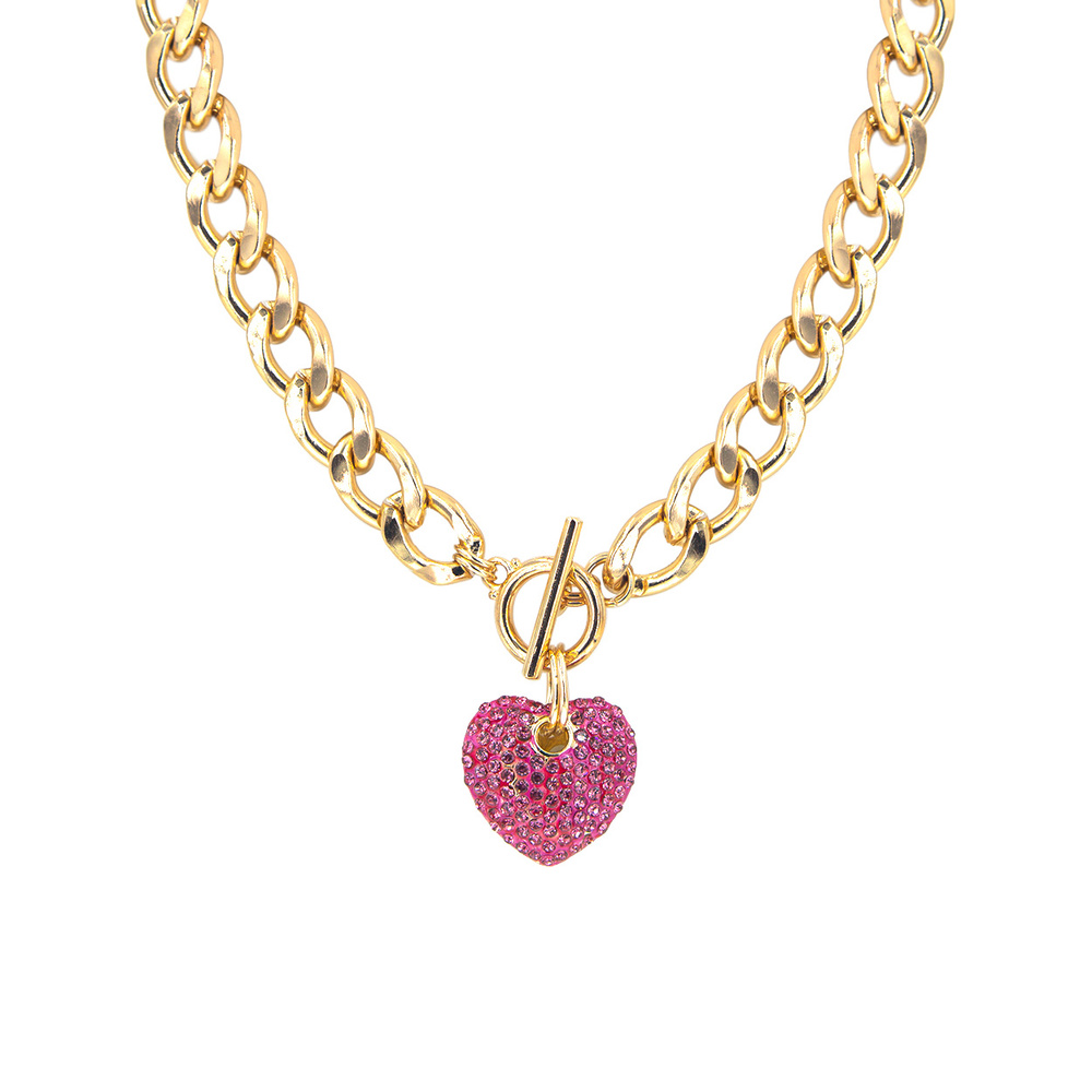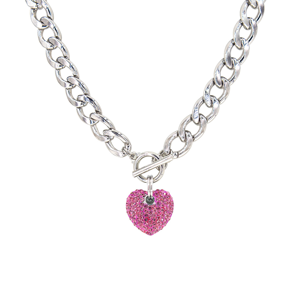 Pink Puffy Pave Heart Necklace