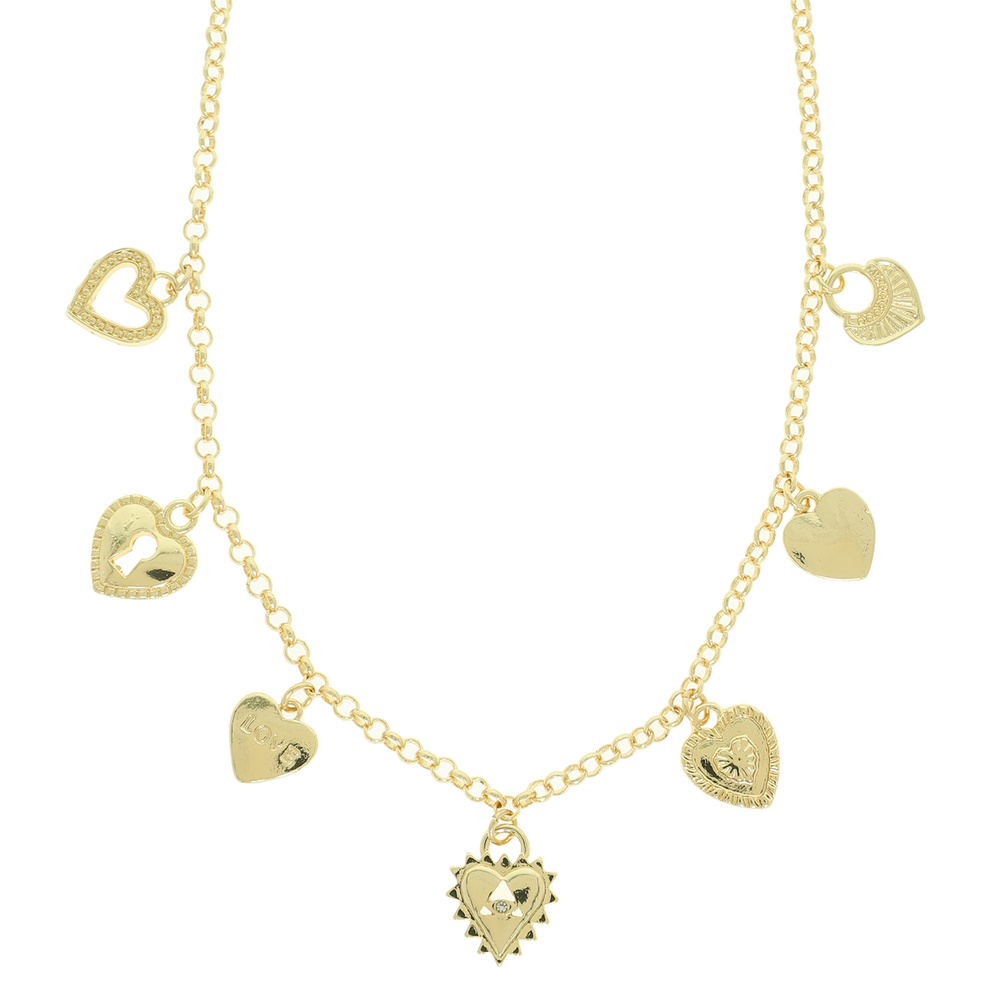 HEART THEME MULTI-CHARM CHAIN NECKLACE IN GOLD-TONE METAL