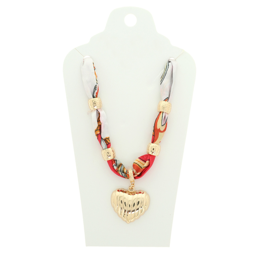 COLORFUL FABRIC BRAIDED BANDANA HEART PENDANT NECKLACE WITH DECORATIVE BEADS