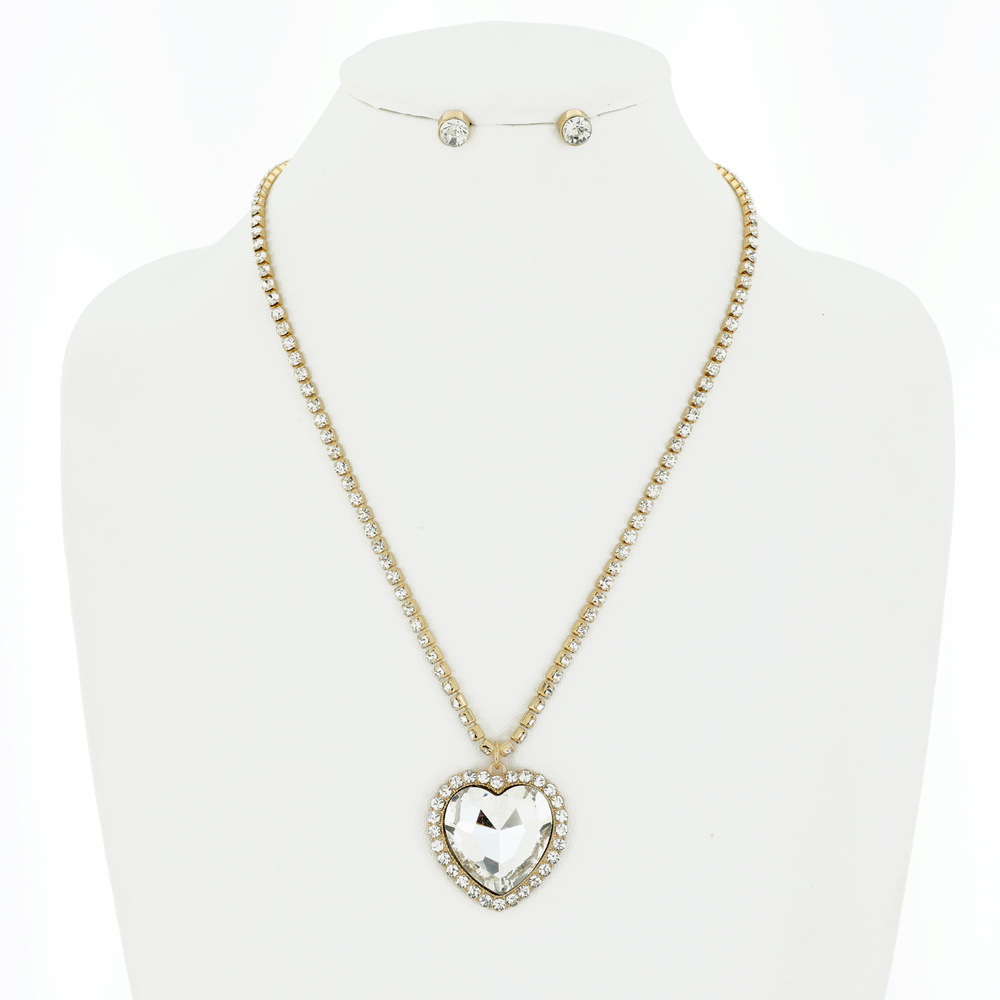 TITANIC HEART OF THE OCEAN CRYSTAL HEART NECKLACE WITH BLUE STUD EARRINGS
