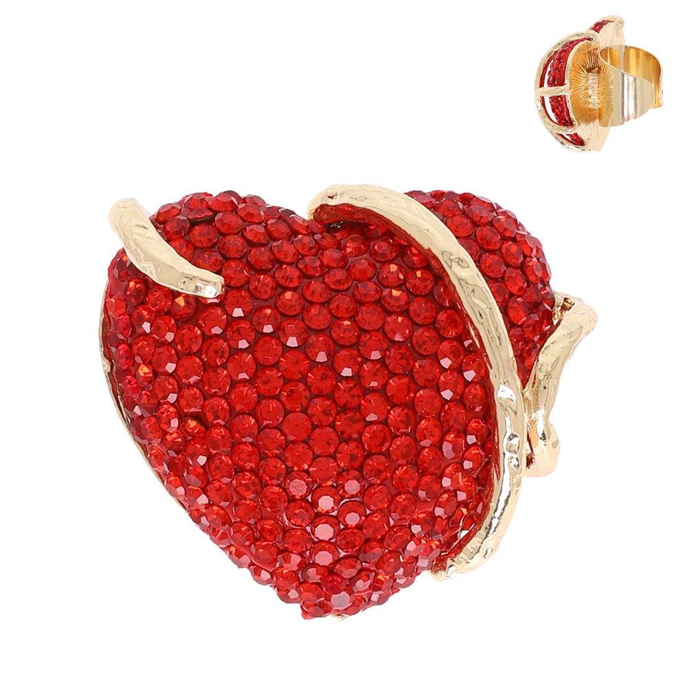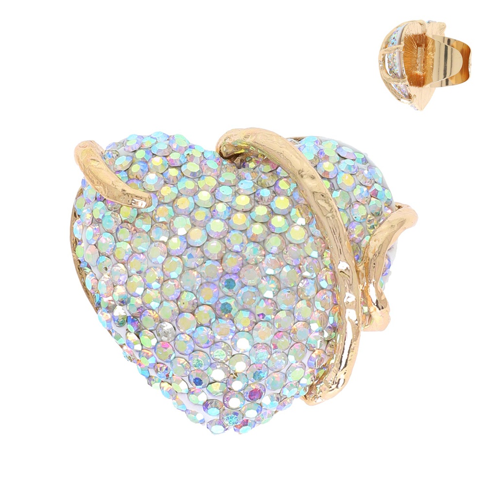 CRYSTAL GEMSTONE HEART SHAPED ADJUSTABLE ONE SIZE STRETCH RING