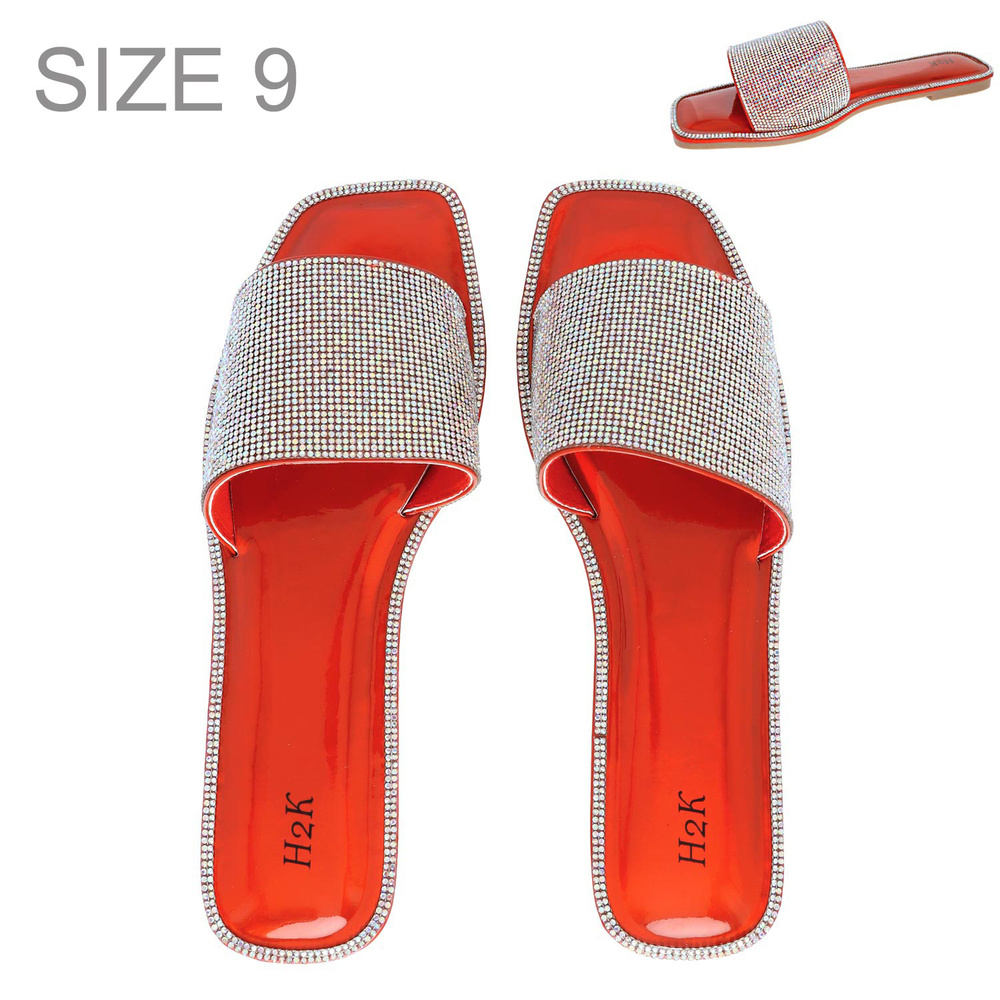 WOMEN'S EMBELLISHED CRYSTAL RHINESTONE FLAT JELLY SLIDES SLIP-ON SANDALS