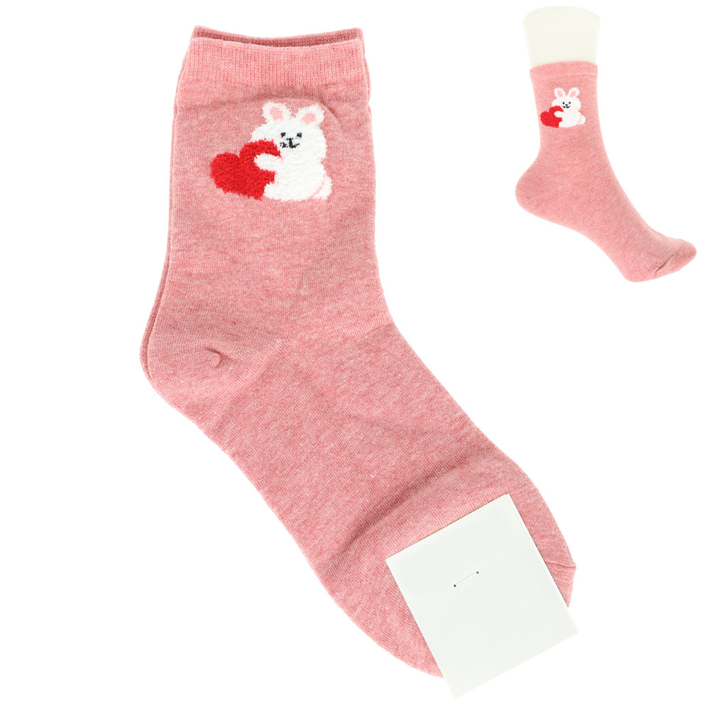 VALENTINE'S BUNNY WITH HEART COMFORT QUARTER CREW COTTON KNIT SPANDEX SOCKS