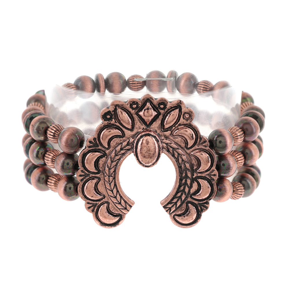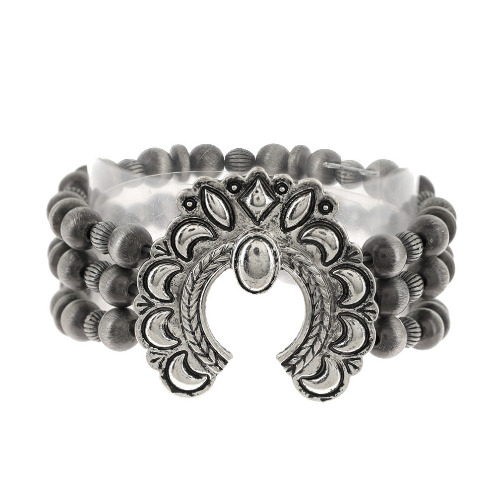 Western Navajo Pearl Beaded Multistrand Squash Blossom Stretch Bracelet